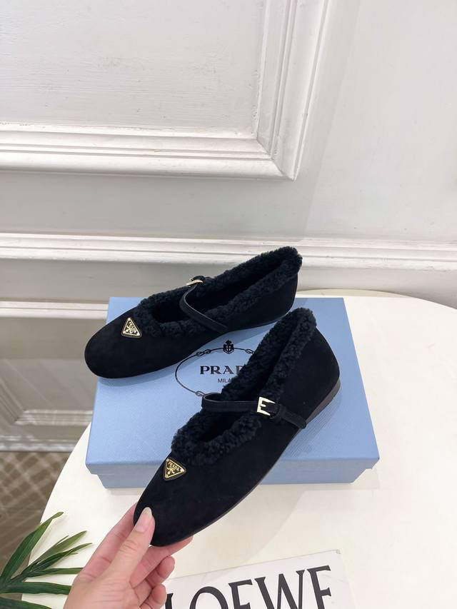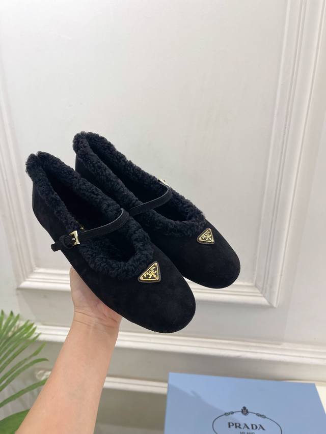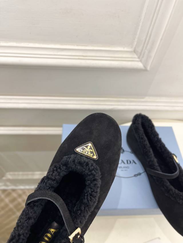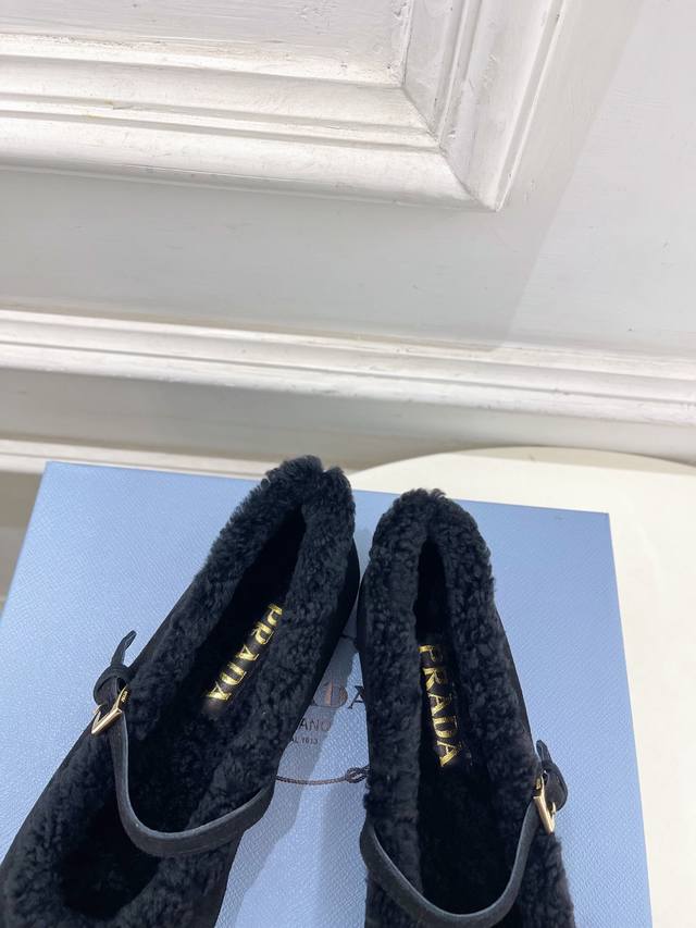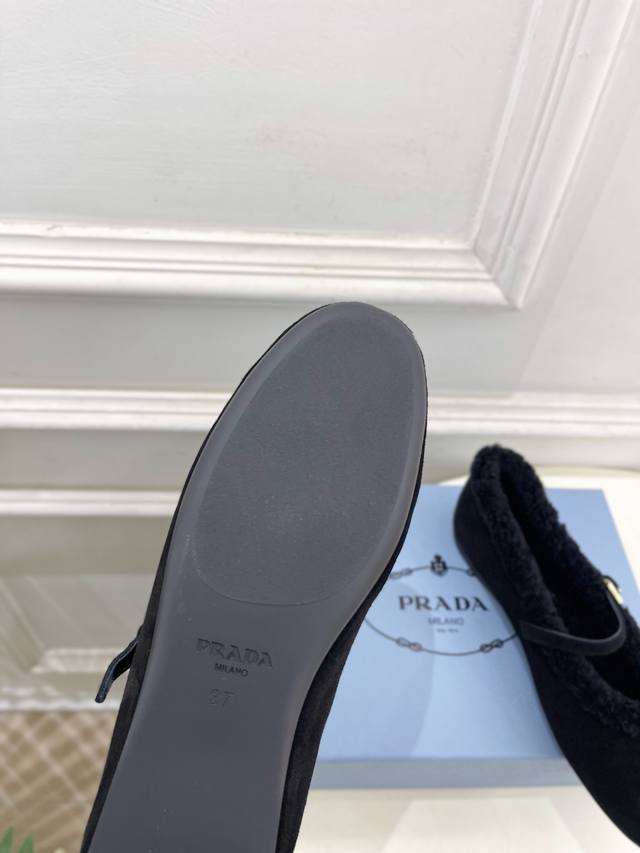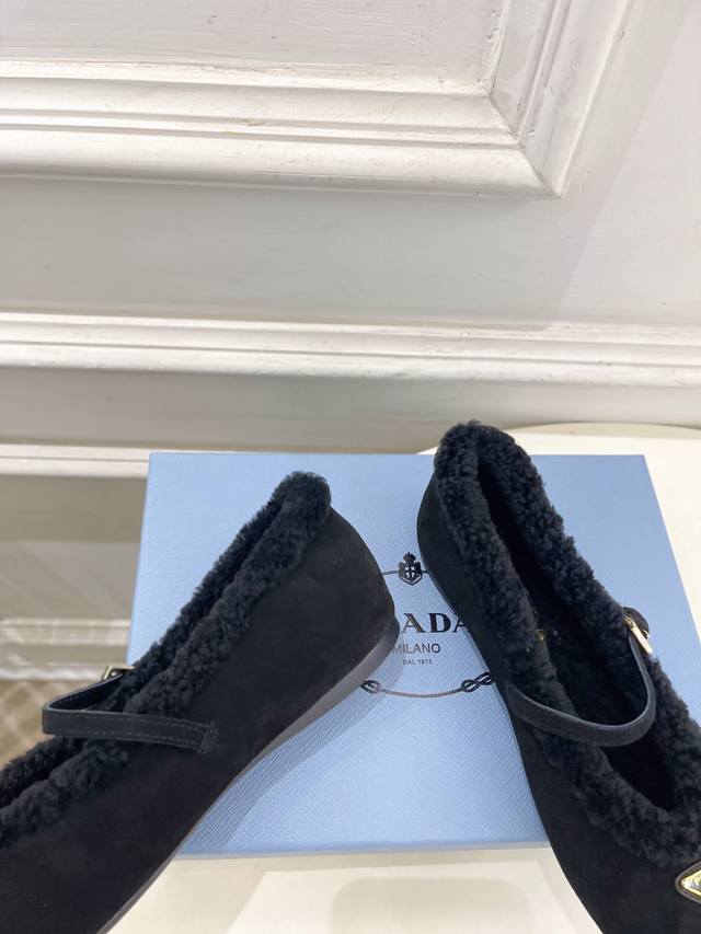 prada 普拉达 25 DDD 专柜走秀款2025秋冬新品 经典三角标玛丽珍毛毛鞋系列 DDD 鞋面:高定制进口牛京 DDD 内里:进口羊毛 DDD 大底:原版开模防滑大底 DDD 跟高:平底 DDD 鞋码: 35-39 40、41定做不退换 DDD 出厂价pp: 下单注明:原版飞机盒10 DDD