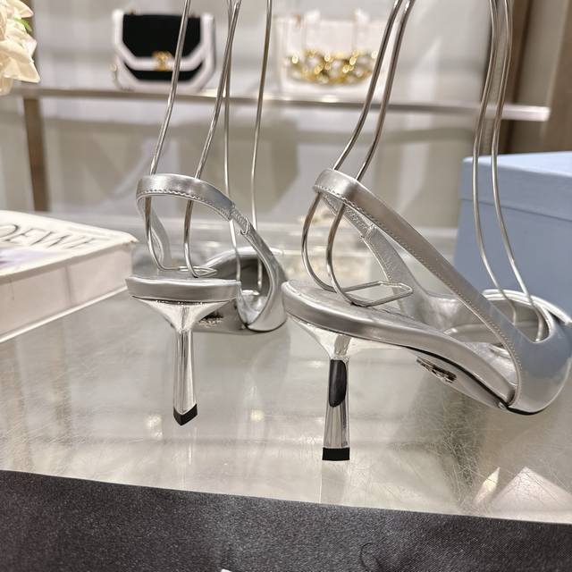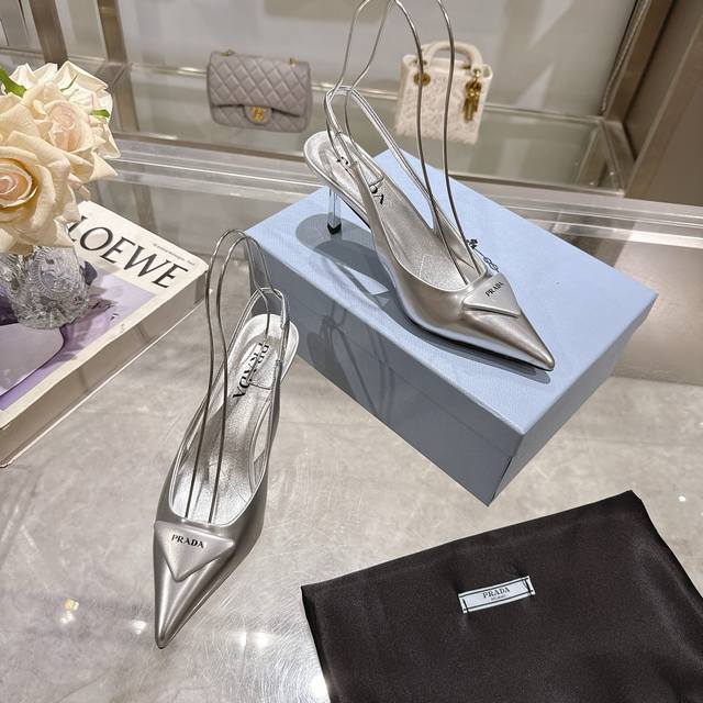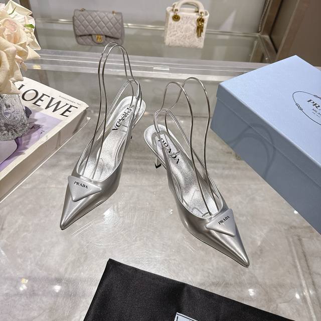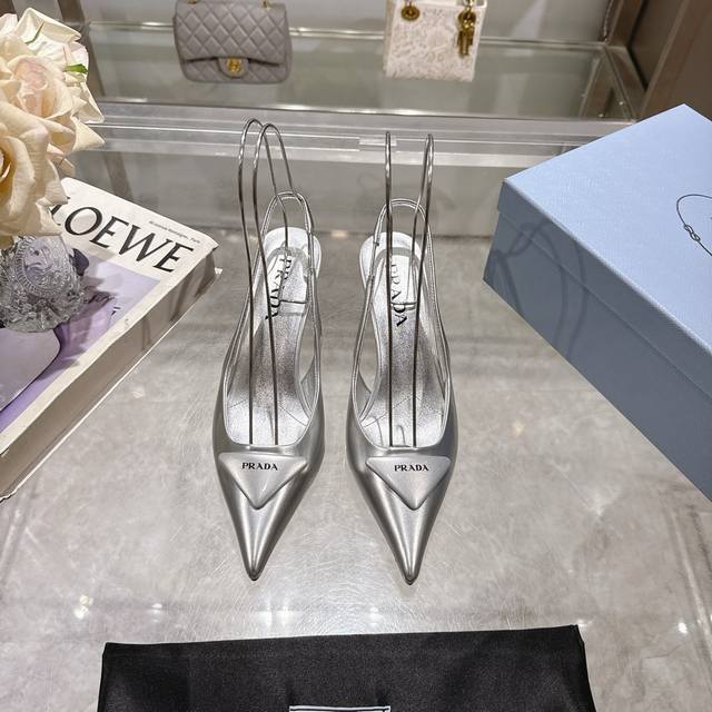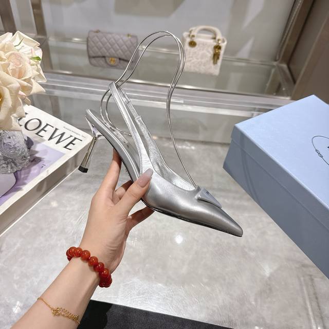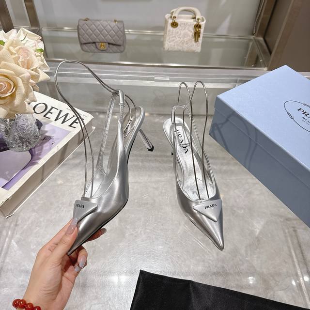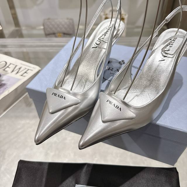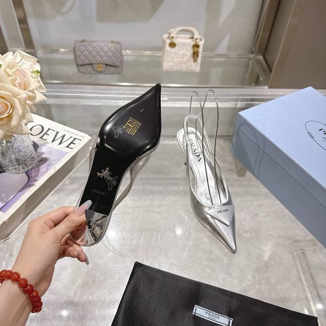 Prada 普拉达 25 出厂价P 专柜走秀款尖头凉鞋 三角扣标 高跟 早春走秀款!鞋面:高定制开边珠面料 内里:进口水染羊皮大底:原版意大利真皮大底 跟高:7