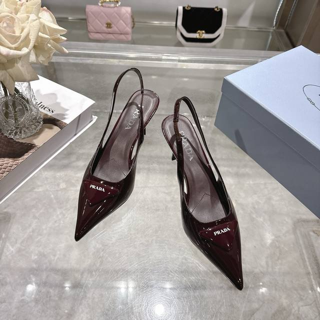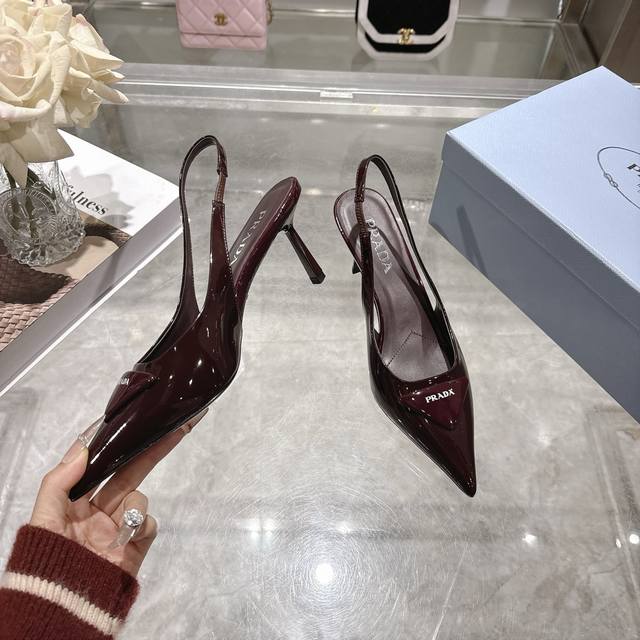 / prada 普拉达 25 出厂价pp皮面 专柜走秀款尖头凉鞋 三角扣标 高跟 早春走秀款! 鞋面:高定制开边珠、漆皮,羊猄面 内里:进口水染羊皮 大底:原版意大