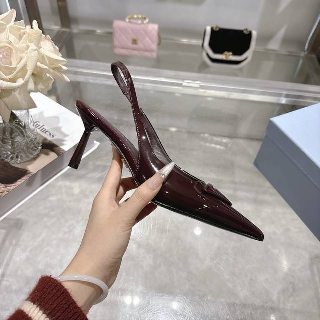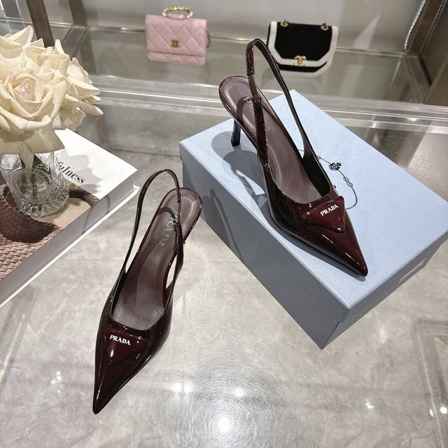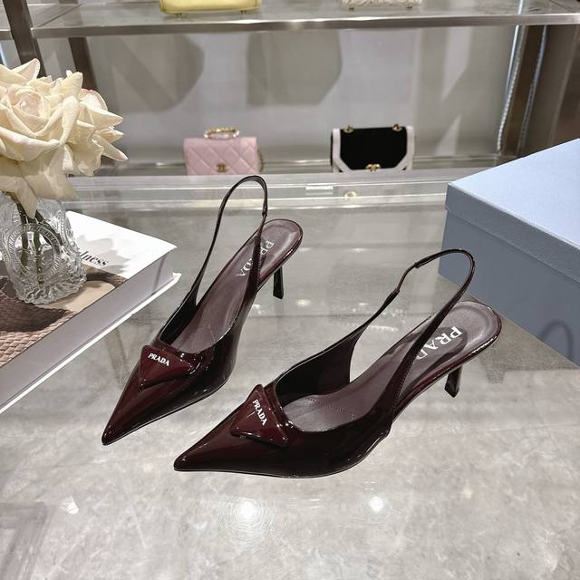 prada 普拉达 25 出厂价pp皮面 专柜走秀款尖头凉鞋 三角扣标 高跟 早春走秀款! 鞋面:高定制开边珠、漆皮,羊猄面 内里:进口水染羊皮 大底:原版意大