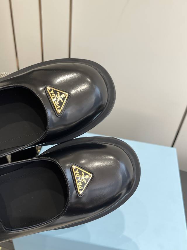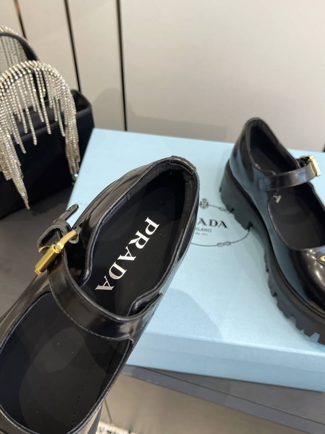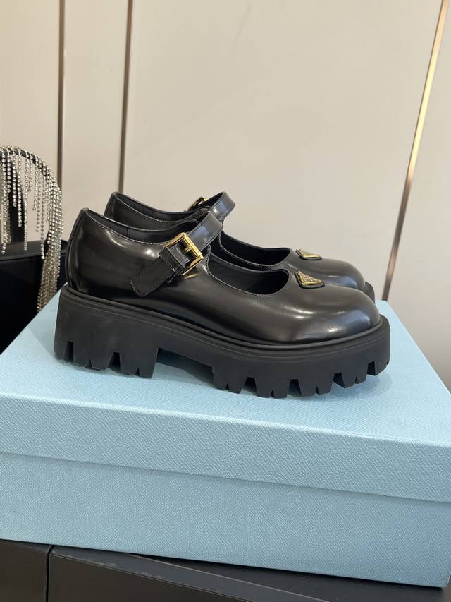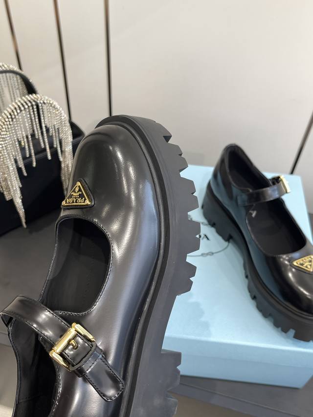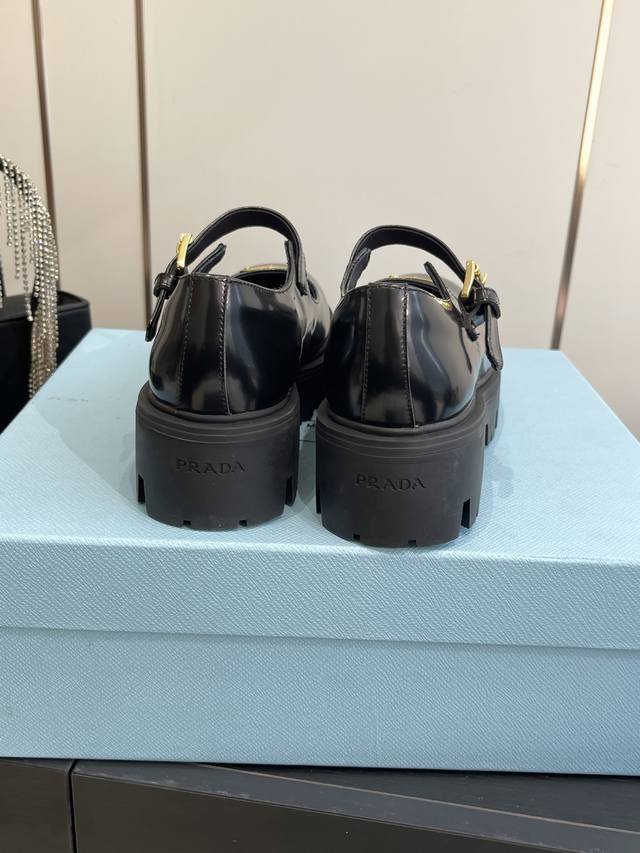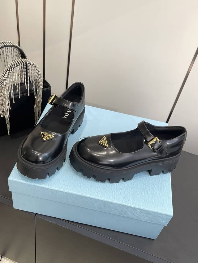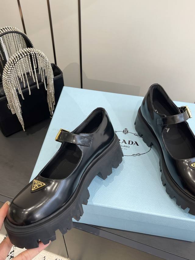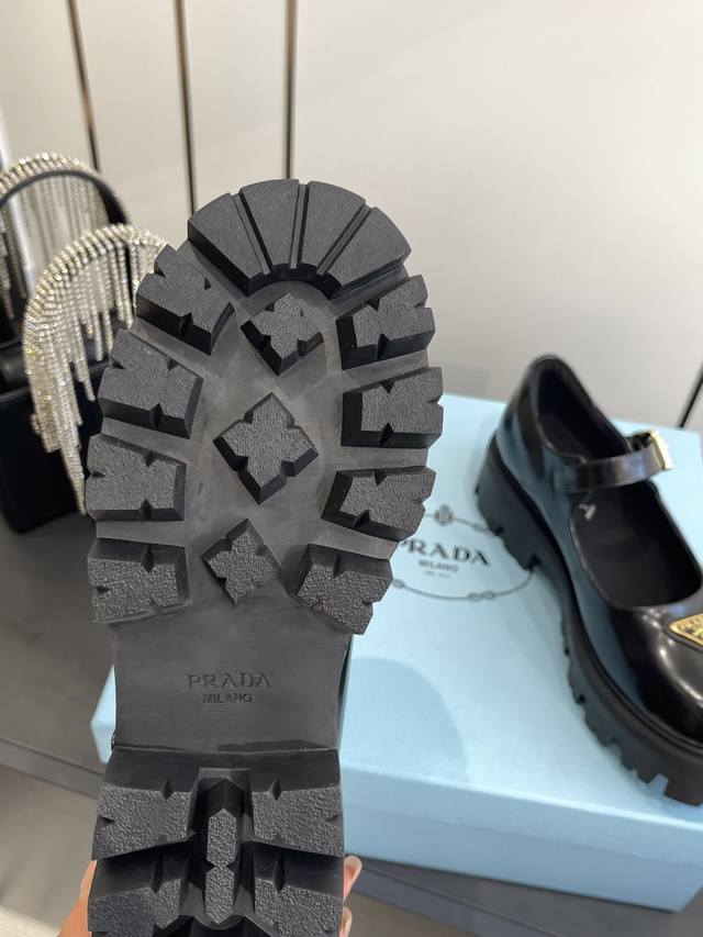 Prada 普拉达 25Ss新款 厚底玛丽珍单鞋 复古时髦前卫的轮齿厚底鞋底搭配牛皮鞋面让整双鞋轻便舒适 鲜艳色彩 满足不同风格时髦人士的多种选择!标志性Log