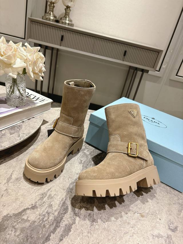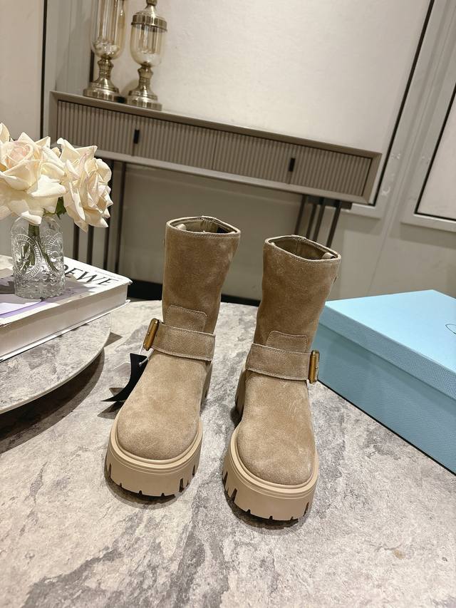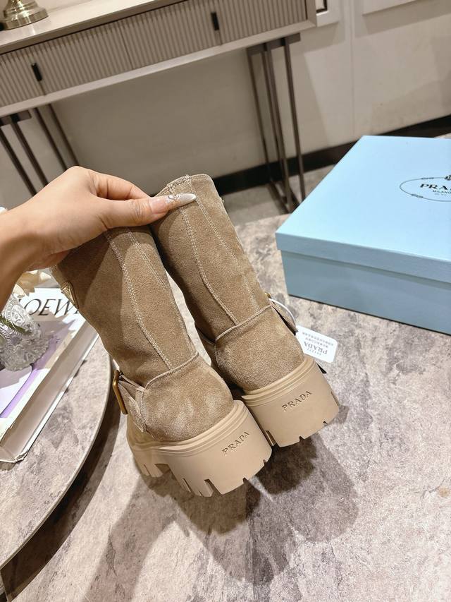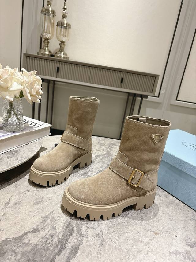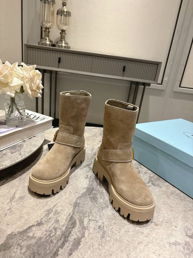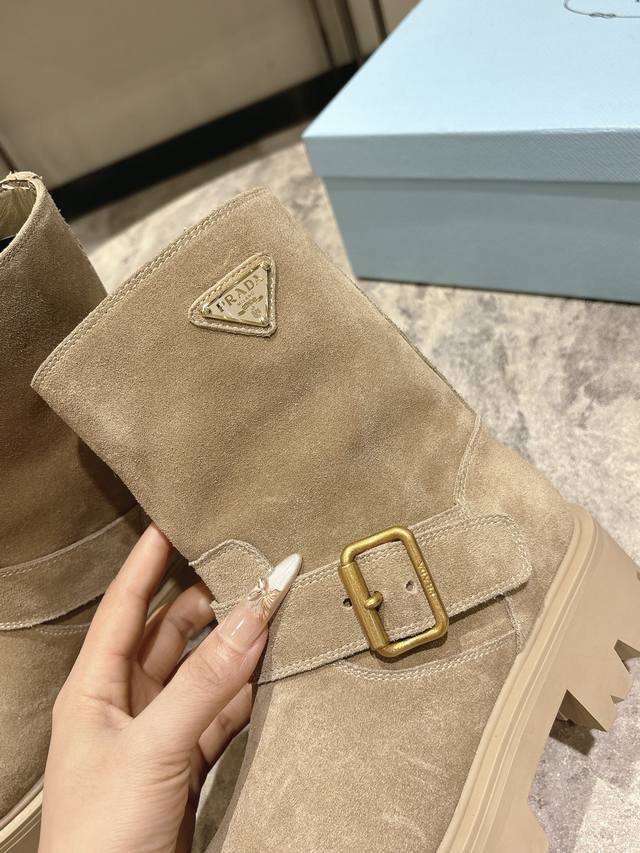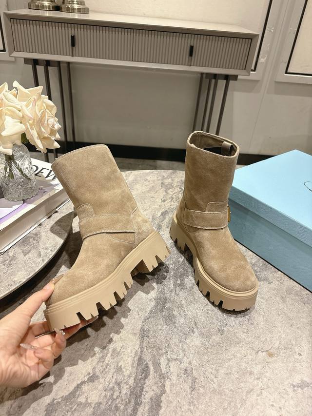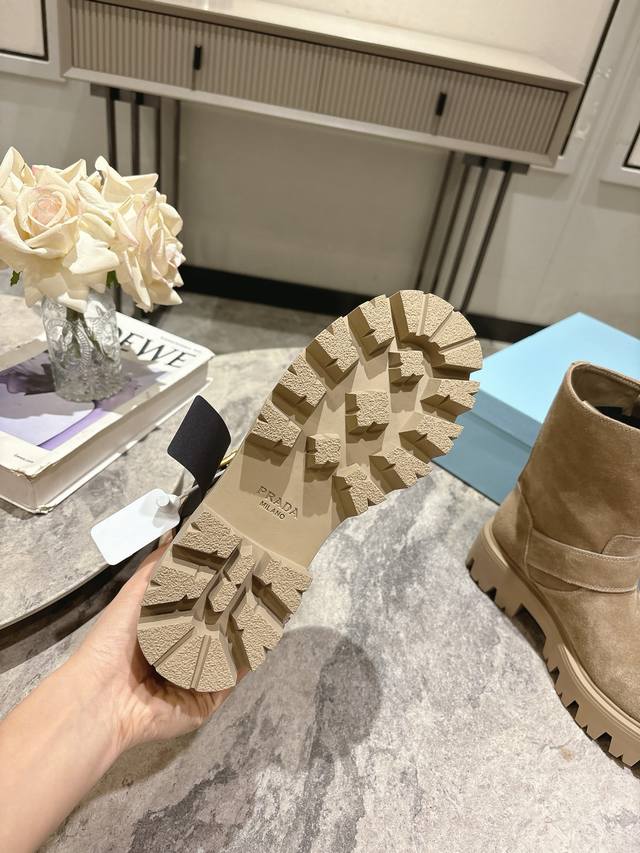prada 普拉达 25Ss秋冬新款 经典三角标 一脚蹬 短靴 DDD 冬天买不到的系列,绝对是今年的大爆款!!贼好看! DDD prada靴子真的很哇塞! DDD 上脚大气显腿瘦气质这块刚好拿捏 DDD 鞋面:进口牛反绒高丝光 擦色小牛皮 DDD 内里垫脚:进口小牛里 DDD 鞋底:灌注Tpu大底 DDD Size:35-39 40.41 订做不退换 DDD