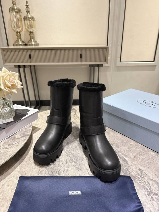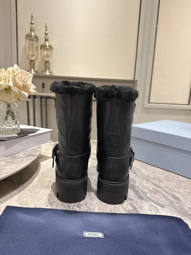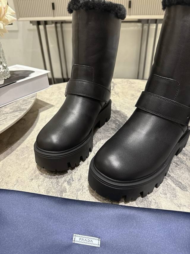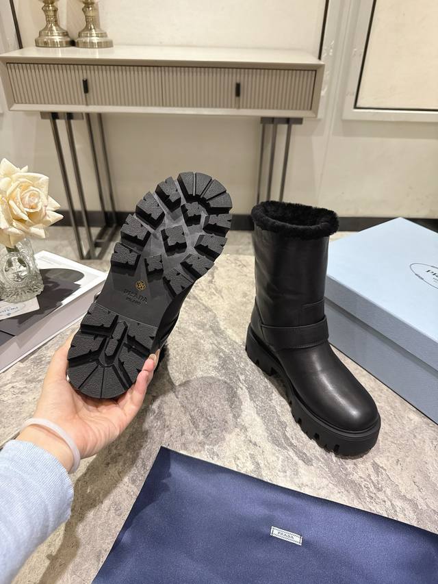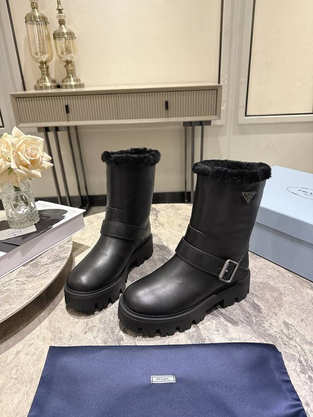 / prada 普拉达 25Ss秋冬新款 经典三角标 一脚蹬 短靴 冬天买不到的系列,绝对是今年的大爆款!!贼好看! prada靴子真的很哇塞! 上脚大气显腿瘦气质