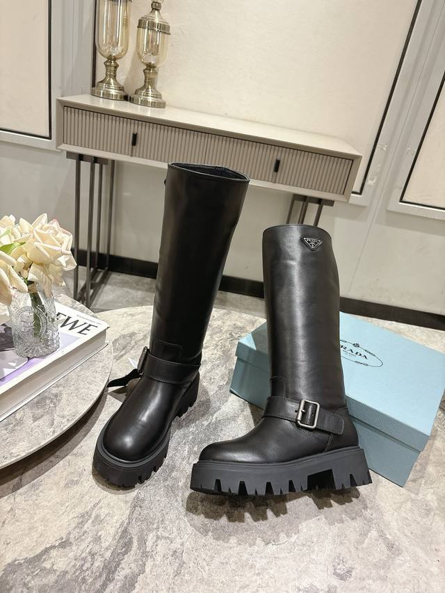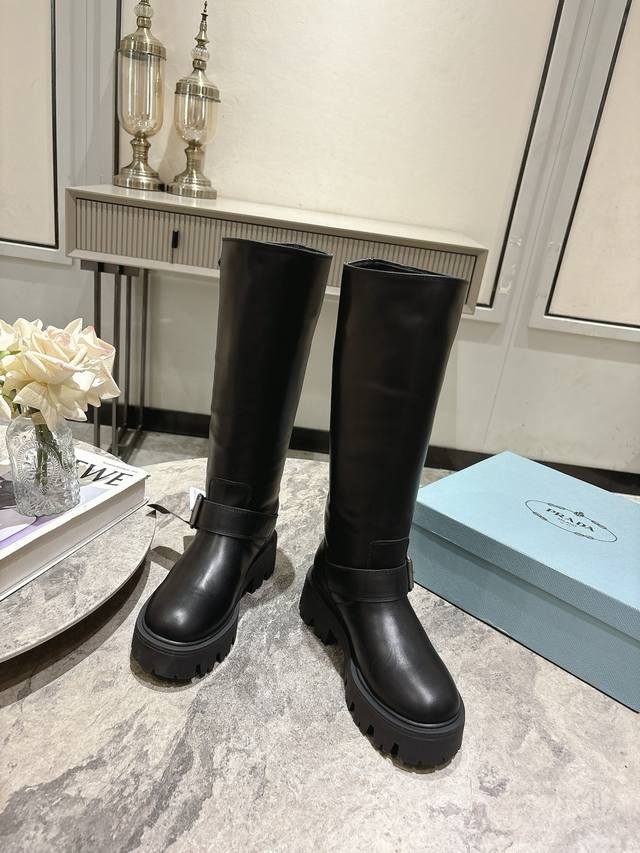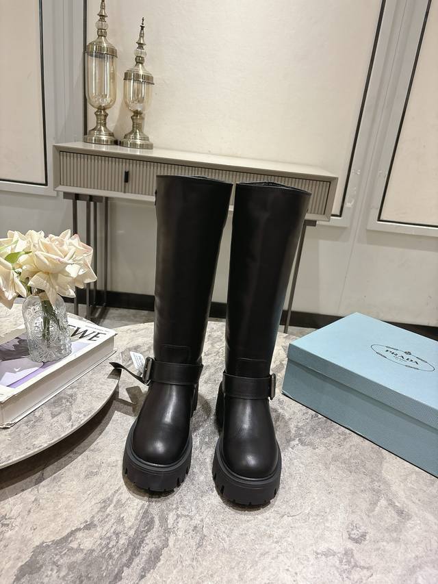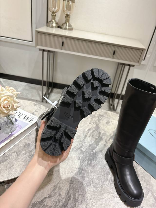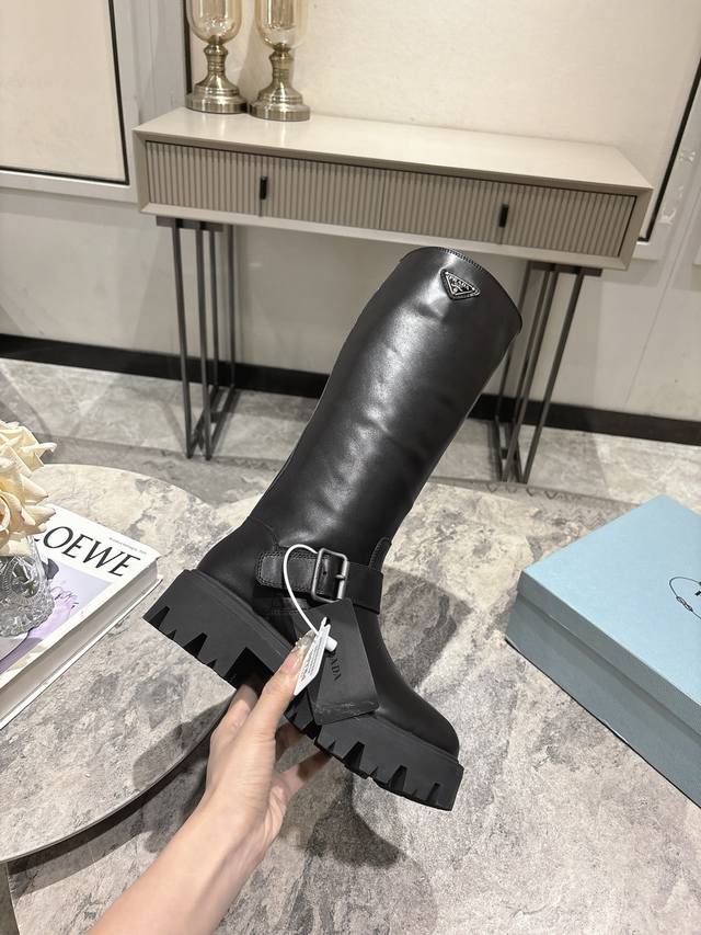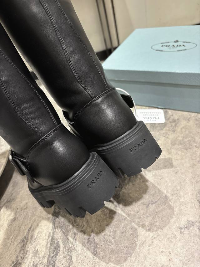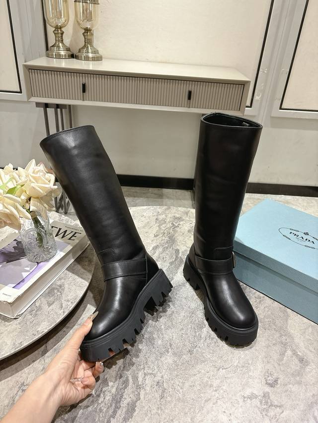 / prada 普拉达 25Ss秋冬新款 经典三角标 一脚蹬 长靴 冬天买不到的系列,绝对是今年的大爆款!!贼好看! prada靴子真的很哇塞! 上脚大气显腿瘦气质