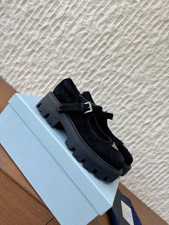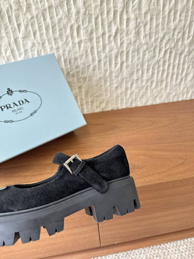 Prada 普拉达 25Ss秋冬新款 Monolith 玛丽珍鞋 三角扣 厚底 小皮鞋 乐福鞋 标志性Monolith鞋履的几何设计和大胆廓形为此款玛丽珍鞋赋予