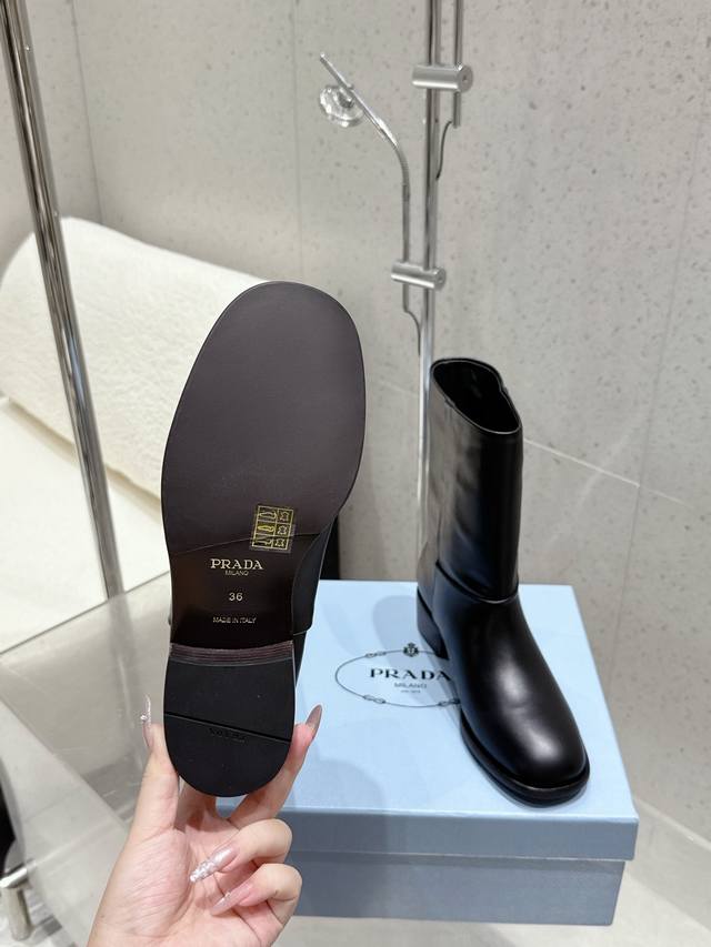 Prada 普拉达 25Ss 秋冬 骑士靴短靴 时尚厚底休闲长靴 ,独到味道,人人都爱也轻松驾驭 每年都会爆.还有就是百搭经典的鞋楦,足以征服你,穿上它,增高休