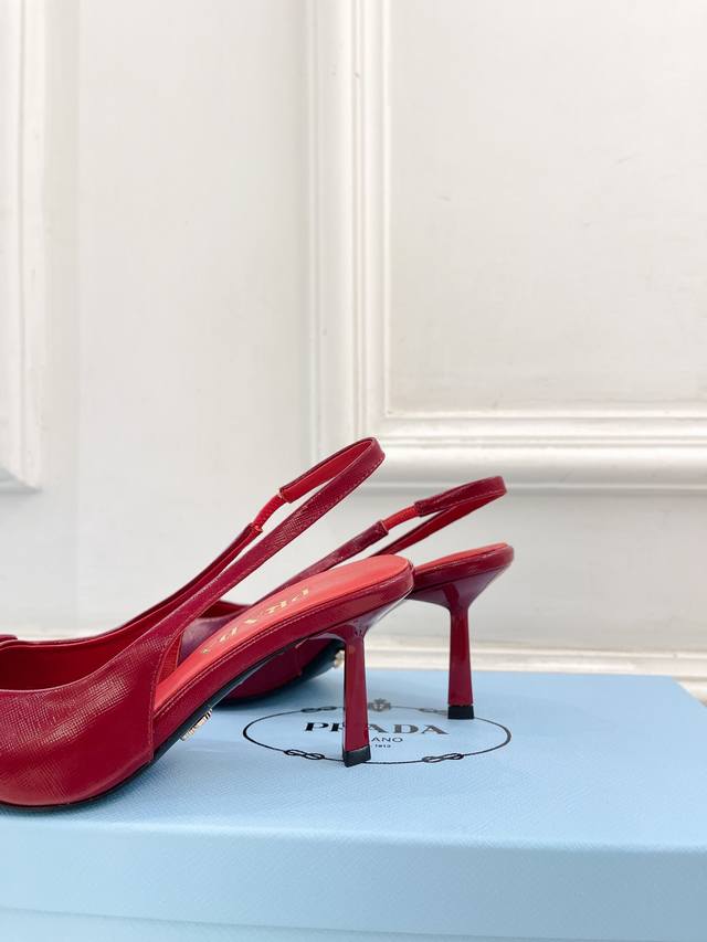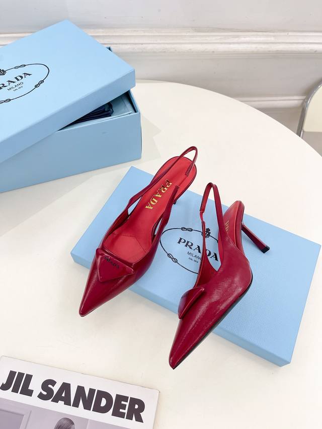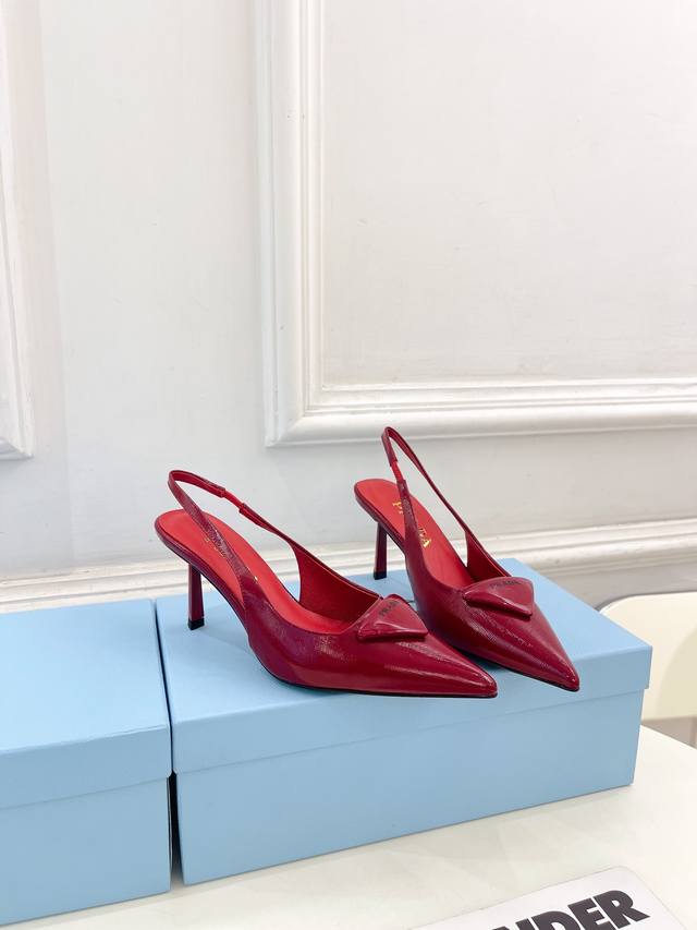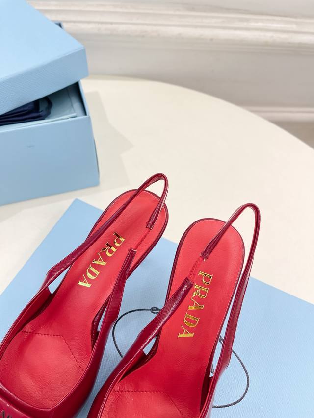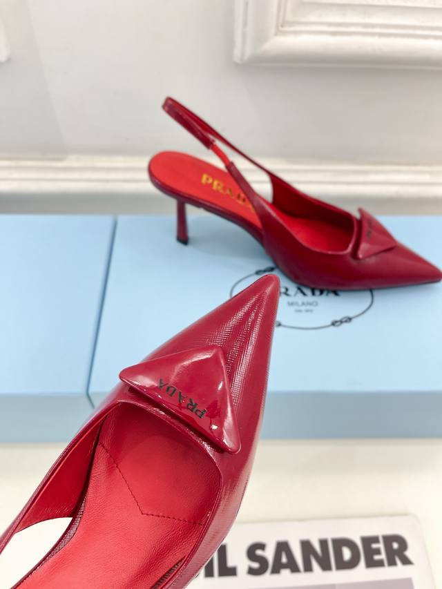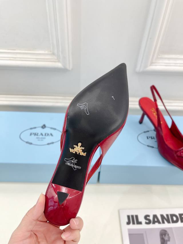 Prada 普拉达 26 DDD 专柜走秀款Saffiano尖头压纹漆皮露跟凉鞋系列 DDD 鞋面:高定制压纹牛漆皮 DDD 内里:进口水染羊皮 DDD 大底: