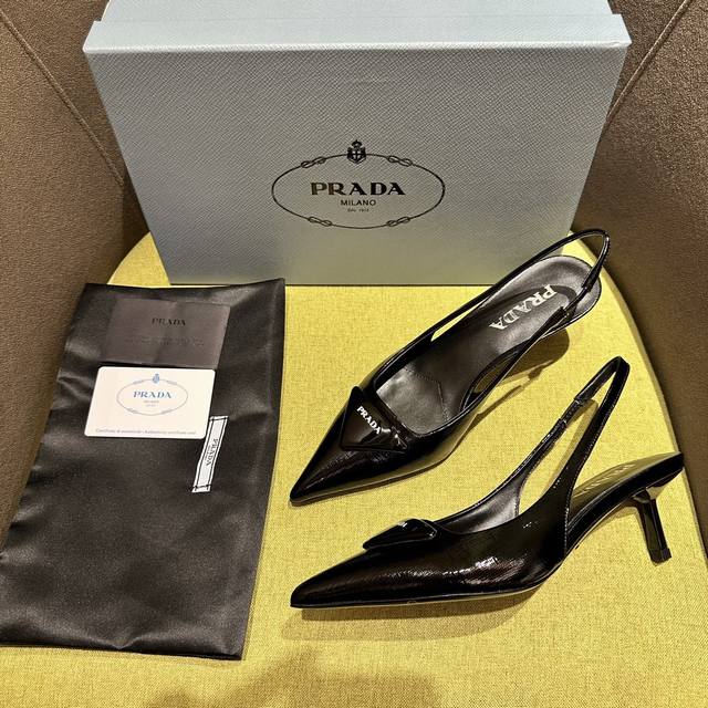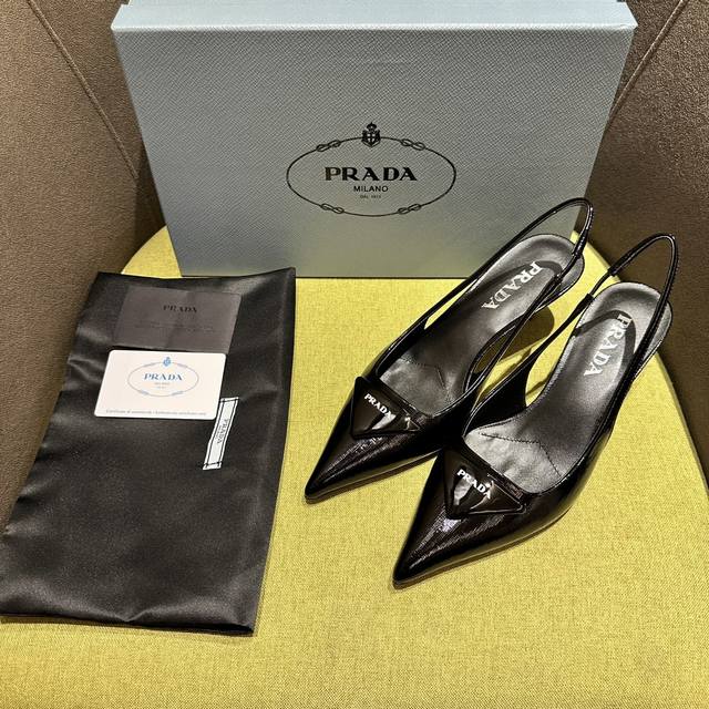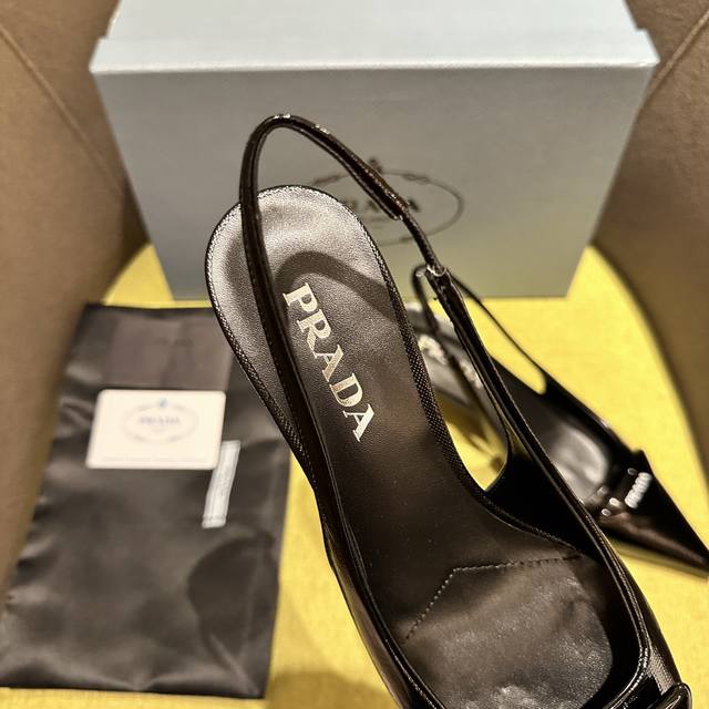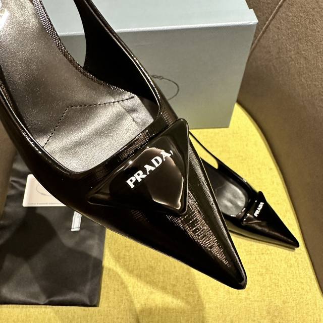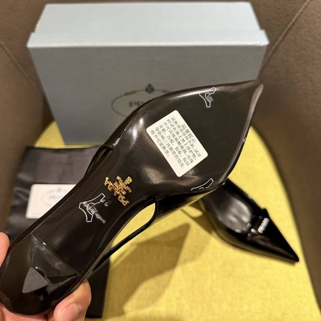 Prada 普拉达 Ss春夏新品 Saffiano漆皮吊带高跟鞋 闪亮登场 小红书各大博主推荐,1-1开发 这款精致的皮革凉鞋兼具时尚优雅格调和极简风格。修长锥形设计,搭配尖头和中等高度的细高跟,手工三角鞋扣点缀以三角形徽标,彰显经典魅力。 跟高5.5Cm 面料十字纹漆皮 羊皮内里 意大利真皮底 码数:35一42 40-42定做不退换 出厂价Pp: