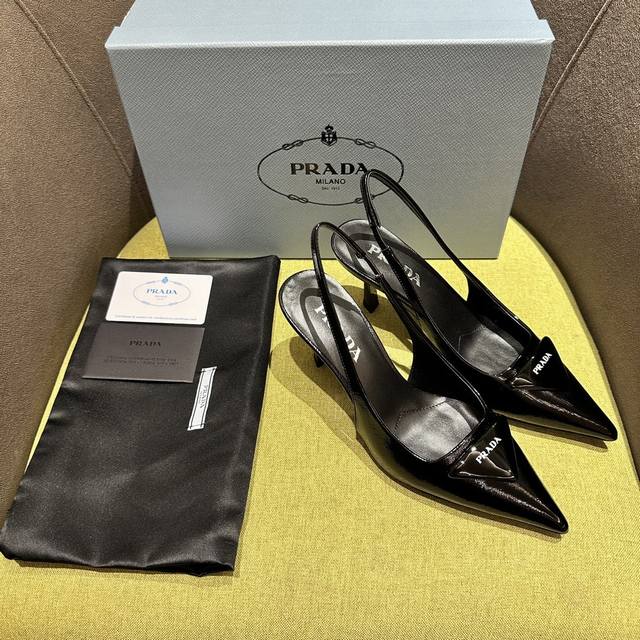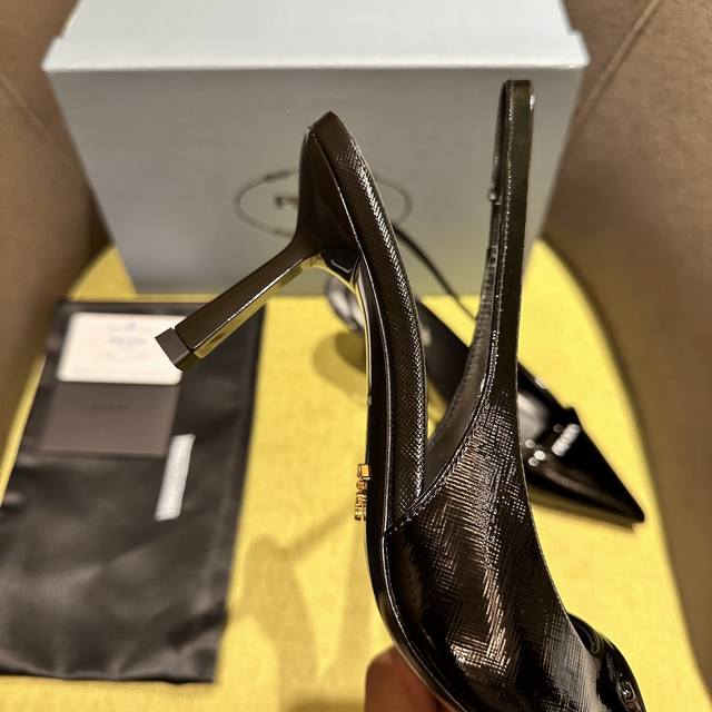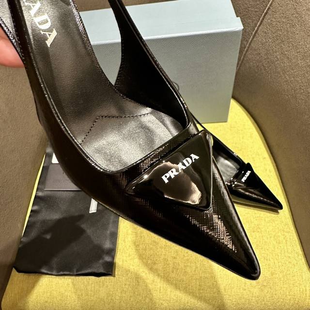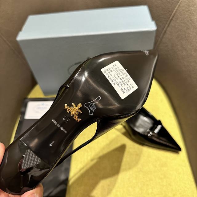 Prada 普拉达 Ss春夏新品 Saffiano漆皮吊带高跟鞋 闪亮登场 小红书各大博主推荐,1-1开发 这款精致的皮革凉鞋兼具时尚优雅格调和极简风格。修长锥形设计,搭配尖头和中等高度的细高跟,手工三角鞋扣点缀以三角形徽标,彰显经典魅力。 跟高7.5Cm 面料十字纹漆皮 羊皮内里 意大利真皮底 码数:35一42 40-42定做不退换 出厂价Pp: