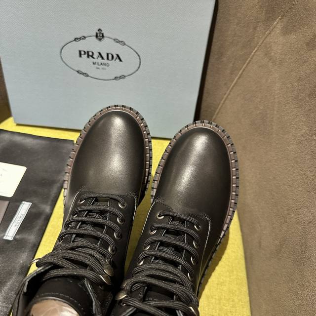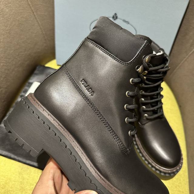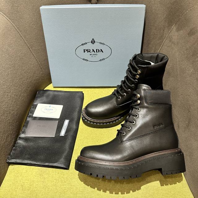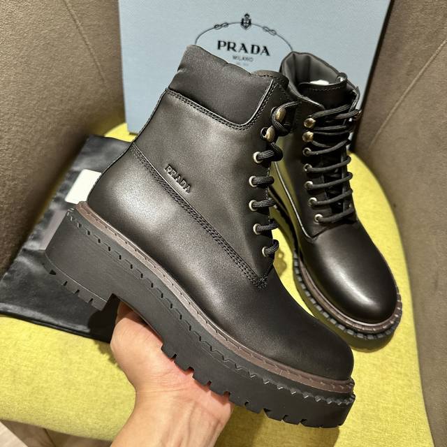 Prada 普拉达 Wa 秋冬新款 金典马丁靴,风格百搭采用厚实鞋底,匠制细节与当代元素增添活力,以全新时尚语言诠释经典。 高度55毫米闪亮登场 小红书各大博主推荐,1-1开发 彰显经典魅力。 打蜡皮,牛皮内里 Tpu大底真皮沿条 码数:35一42 40-42定做不退换 出厂价Pp: