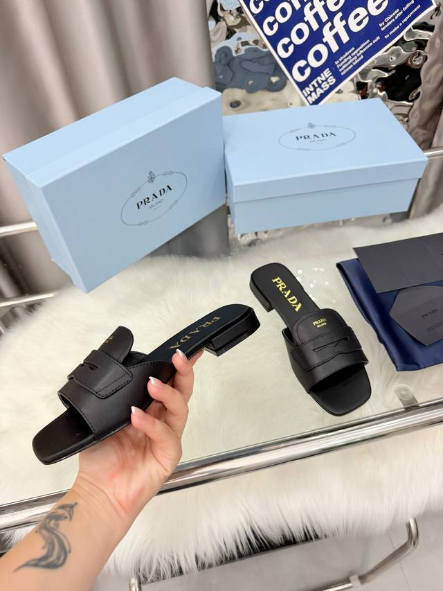 prada 普拉达2026Ss 新品 Leather Band拖鞋 闪亮登场 小红书各大博主推荐,1:1彰显经典魅力。 面料小牛皮 羊皮内里 意大利真皮大底 3