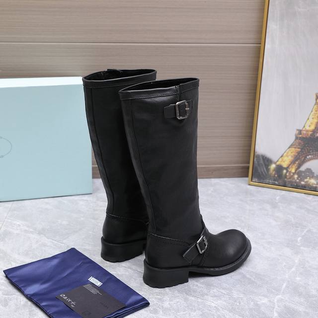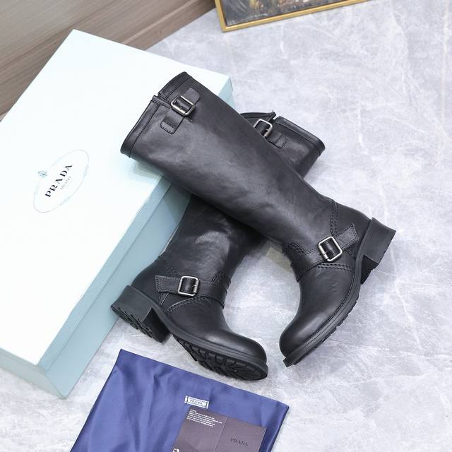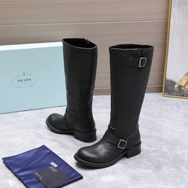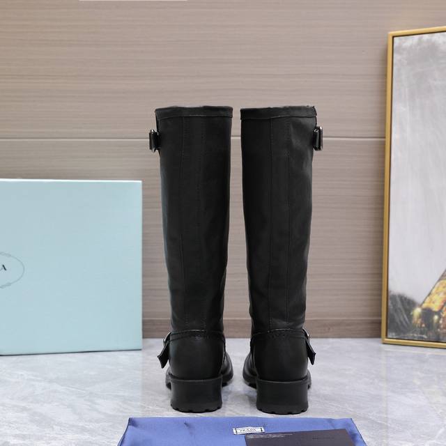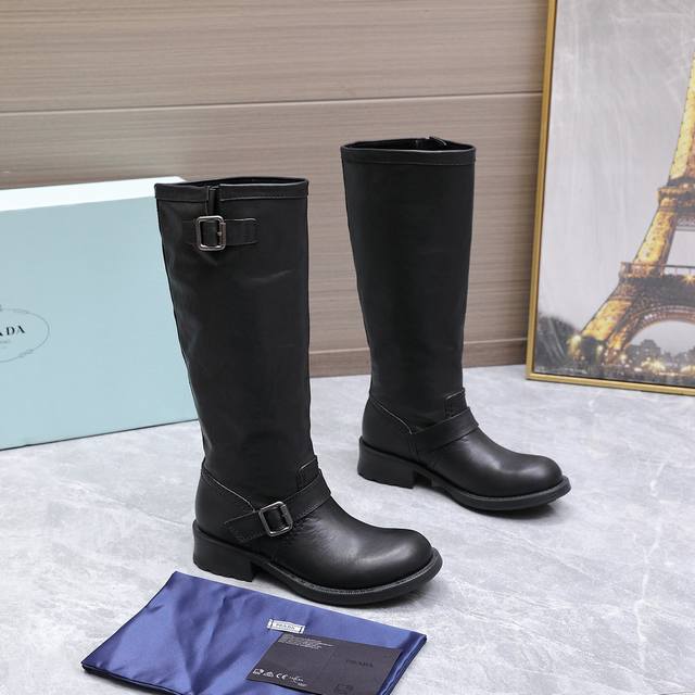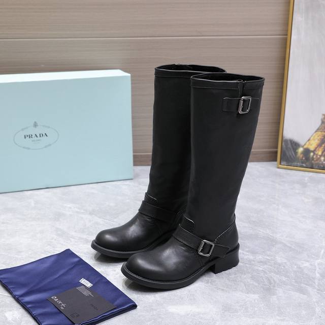 prada 普拉达25Wf秋冬新品皮带扣 DDD 复古粗跟长靴 DDD 经典的皮带扣设计 如同一把时光钥匙 DDD 打开复古与摩登交融的大门。 DDD 金属扣的光泽与皮革的质感相互映衬 DDD 每一道纹理、每一次扣合 DDD 都诉说着p家对精湛工艺的执着追求。 DDD 靴子的轮廓 巧妙融合了往昔的优雅与当下的个性。 DDD 做旧效果的皮革 带着岁月的痕迹 DDD 仿佛在讲述着时尚的故事 而简洁利落的线条 DDD 则赋予其现代感的利落身姿 DDD 让每一步都散发着独特的魅力。 DDD 无论是搭配复古风的连衣