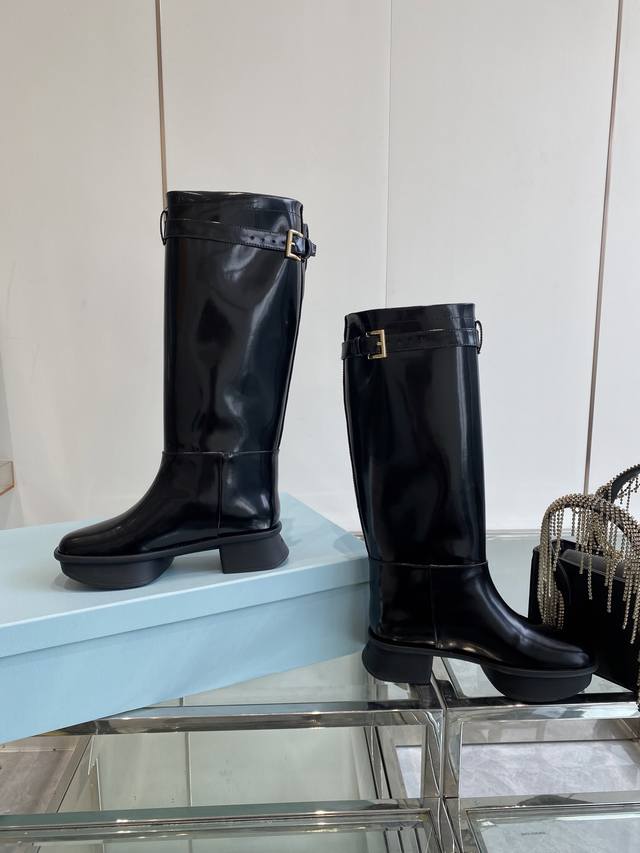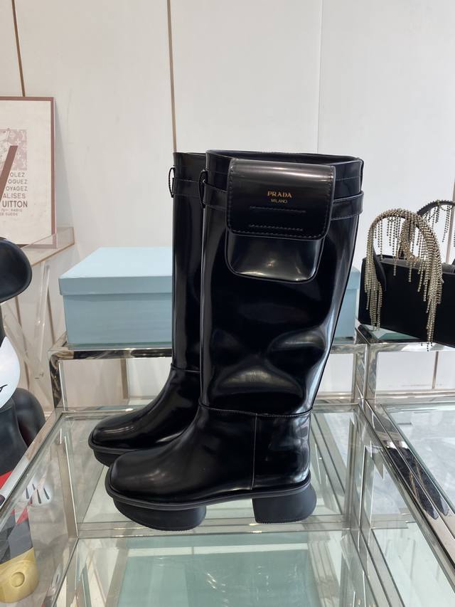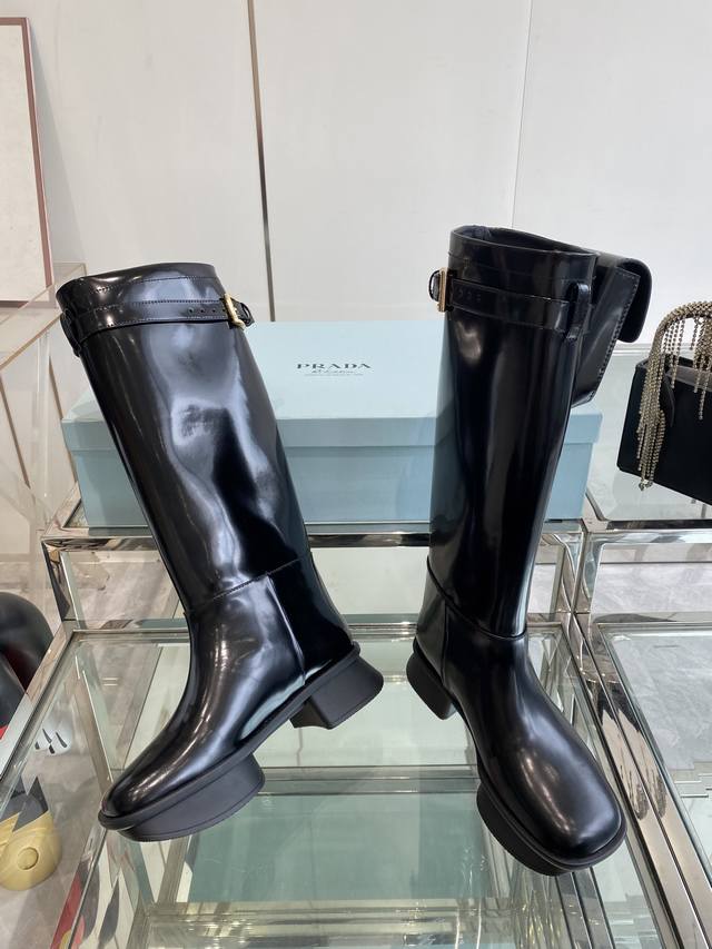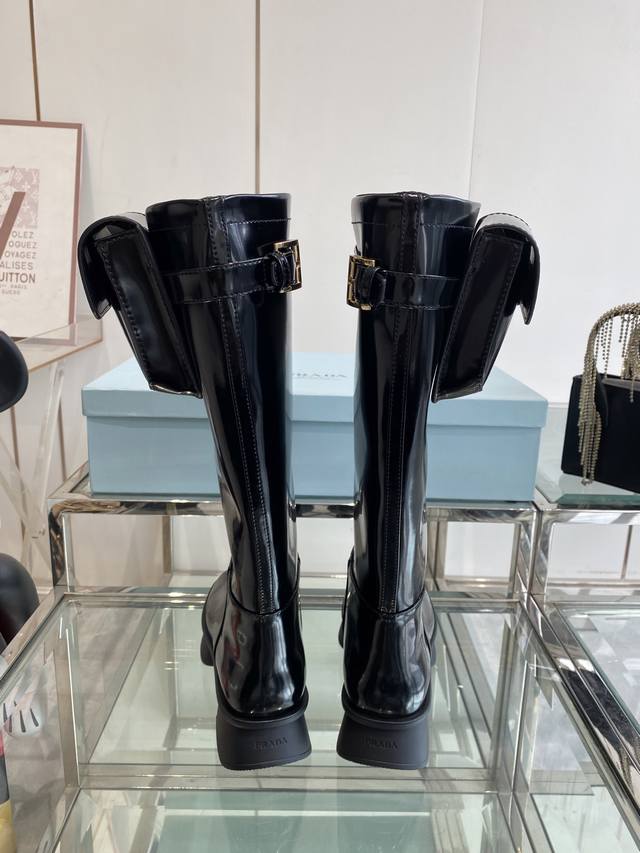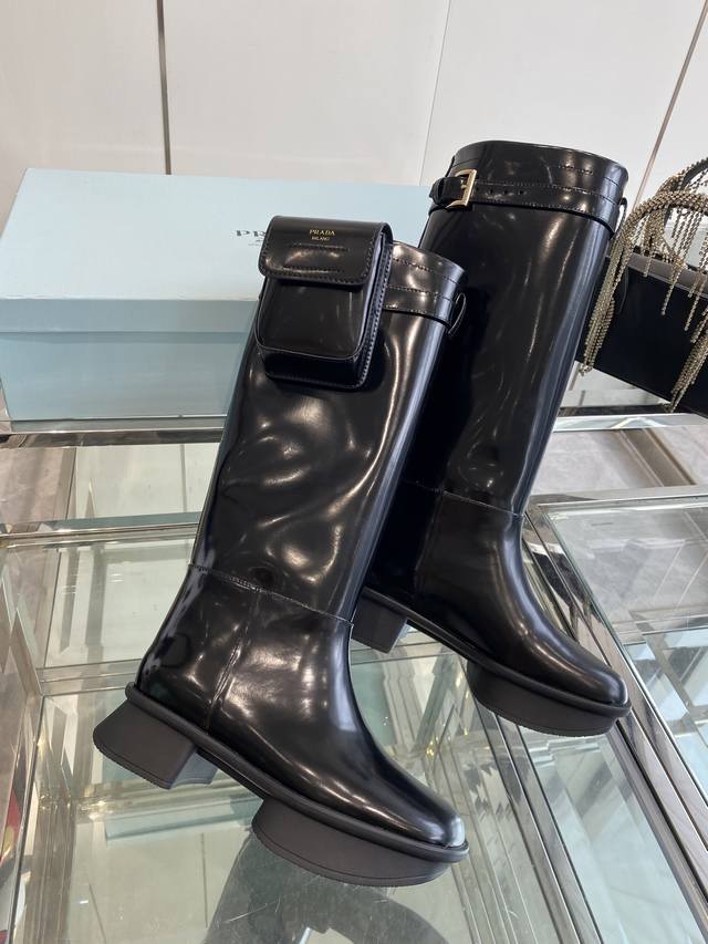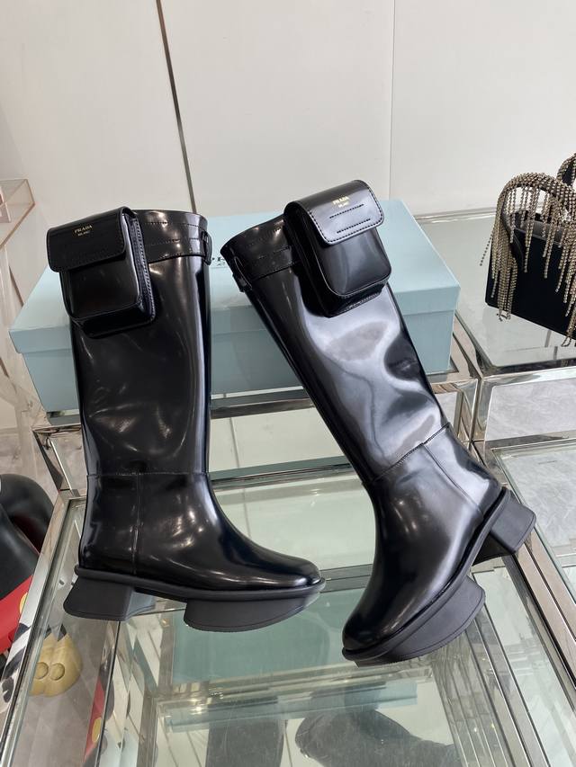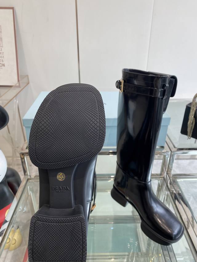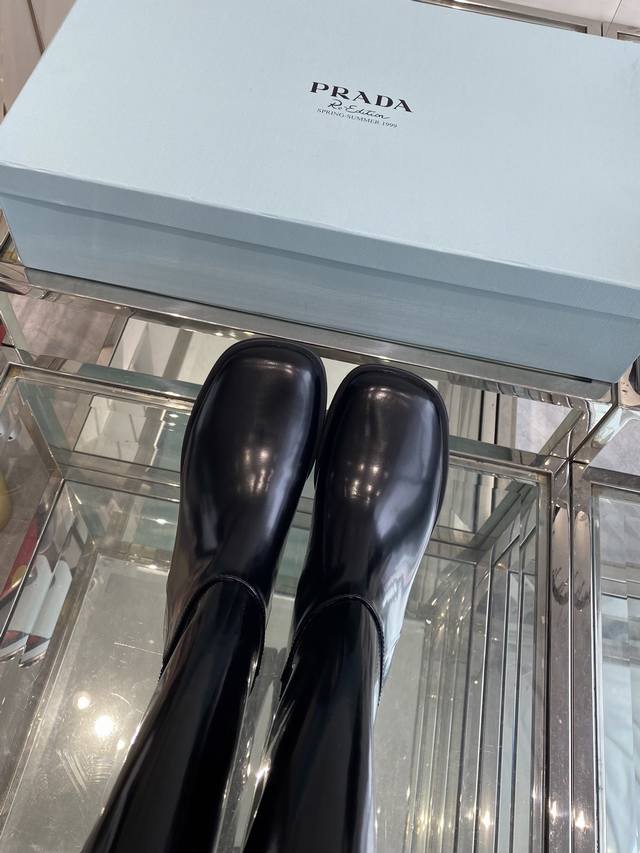 Prada 25Ss新款Equal一脚蹬机车靴,重新演绎1999春夏系列档案库设计,采用现代主义廓形。醒目线条结合创新鞋底。最近 得不得了 创新的Prada经典帆布小包搭配上增高机车长靴 一鞋两穿 赞哦~欧洲购入Y版1:1复刻 Tpu高韧性大底 高6Cm 码数:35-40 40订做