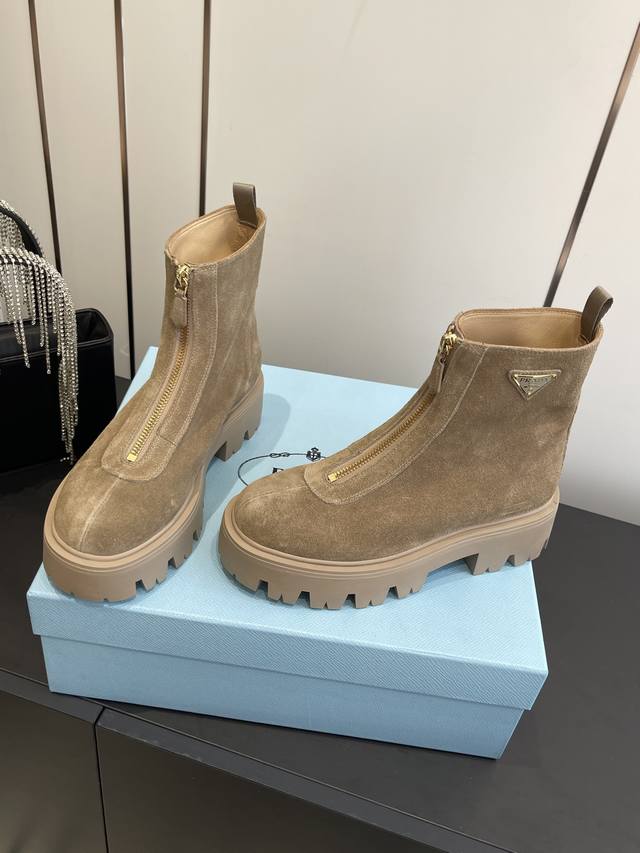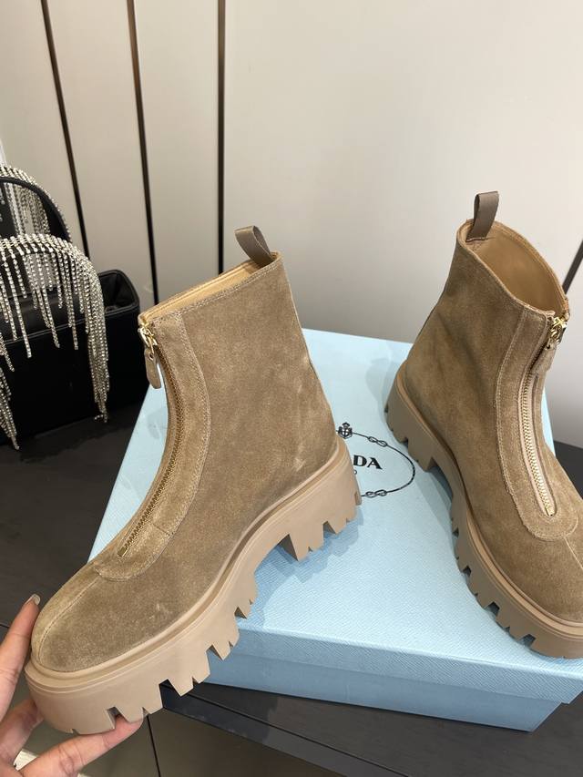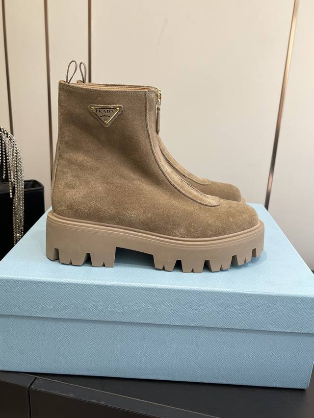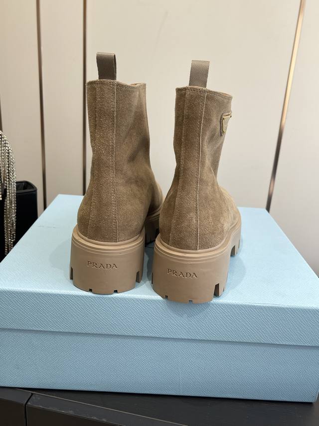 Prada 25Ss普拉达经典三角标一脚蹬王炸女靴 冬天买不到的系列,绝对是今年的大爆款!!贼好看!Prada靴子真的很哇塞!上脚大气显腿瘦气质这块刚好拿捏 鞋面:牛猄 内里:牛皮 大底:原板开模大底 码数:35-41 40.41订做