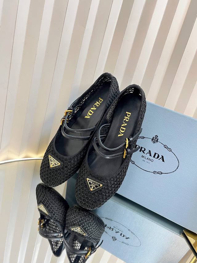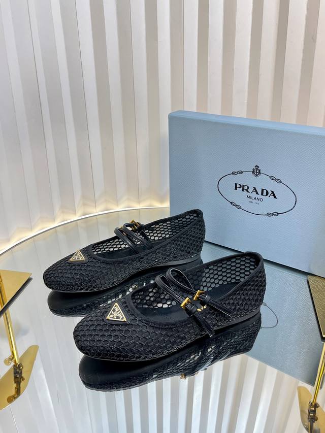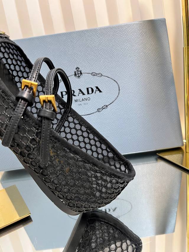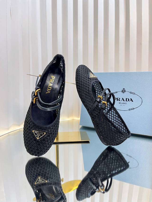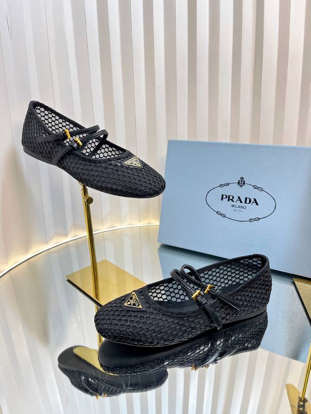 Prada 25Ss 普拉达早春新品网布玛丽珍单鞋 芭蕾舞鞋