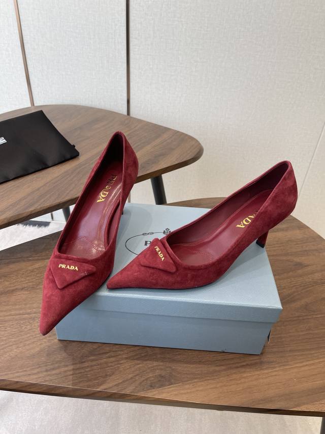 FFF Prada26Ss尖头小猫跟三角标高跟鞋 DDD 新款 鞋面材质变啦!带格纹的皮面很有肌理感,真的不要太好看 还做了后系带设计 小性感简约大气 太好看了吧 这一季的Prada小猫跟配上三角扣的设计 真的很美 DDD 面料:麂皮 DDD 内里:羊皮 DDD 大底:真皮大底 DDD 跟高:7.5Cm DDD 码数:35-40 40.定制不退换 DDD