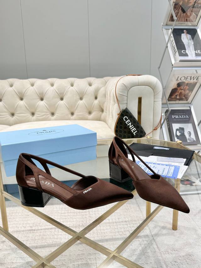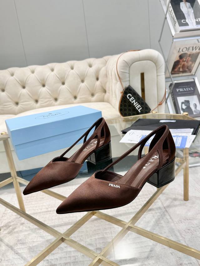 / Pradr 普拉达 上新出厂价P 进口真皮底 220仿真皮底 Prad* Raf Simons X Aw 早春最新T台走秀粗跟系列款 鞋面:进口真丝 内里:进口