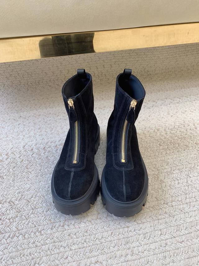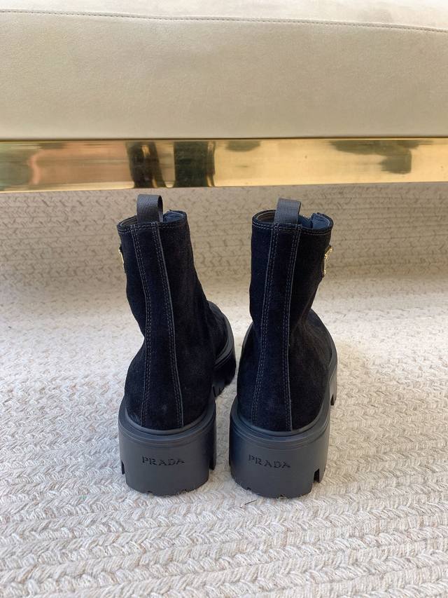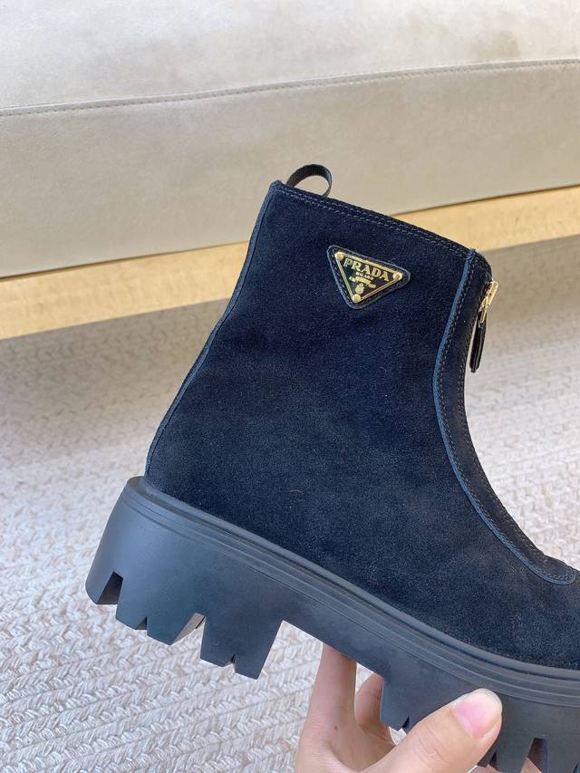 Prad*Ss25新款正开拉链麂皮短靴 原版套楦 顶级品质 材质 鞋面:进口麂皮 内里:进口羊皮里 大底:进口定制橡胶底 码数:35-39 34.40.41定做