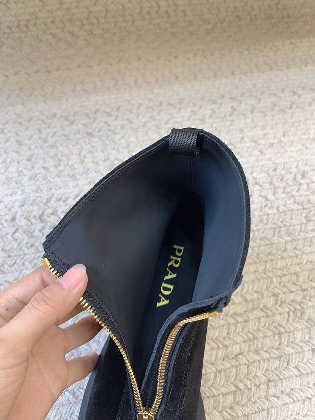 Prad*Ss25新款正开拉链麂皮短靴 原版套楦 顶级品质 材质 鞋面:进口麂皮 内里:进口羊皮里 大底:进口定制橡胶底 码数:35-39 34.40.41定做不退不换