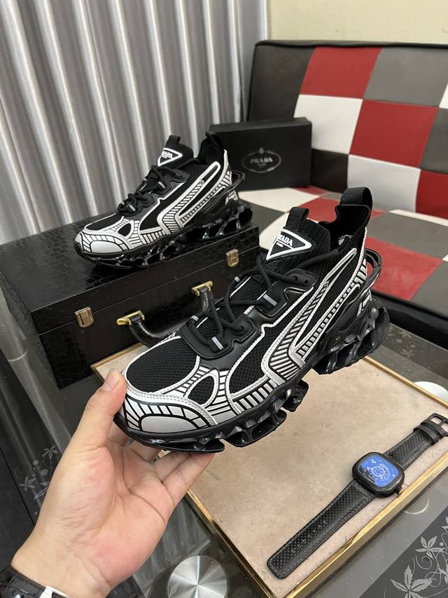 / 出厂价 普拉达 最 2024新款精心打造,引爆全场!不断创新的国际品牌 此款男士四季休闲鞋,原版版本,鞋面采用牛皮面料 ,皮垫脚真爆超轻大底,透气舒适以质量说话