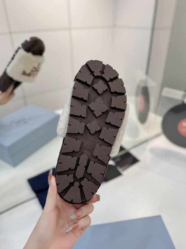 / 出厂价P 普拉达秋冬新款毛拖,毛毛鞋,可外穿 不管居家还是外穿都是品味的象征性! 秋冬搭配袜子 那更是太绝太绝了 鞋面:进口澳洲真羊毛 手感细腻柔软丝滑 大底: