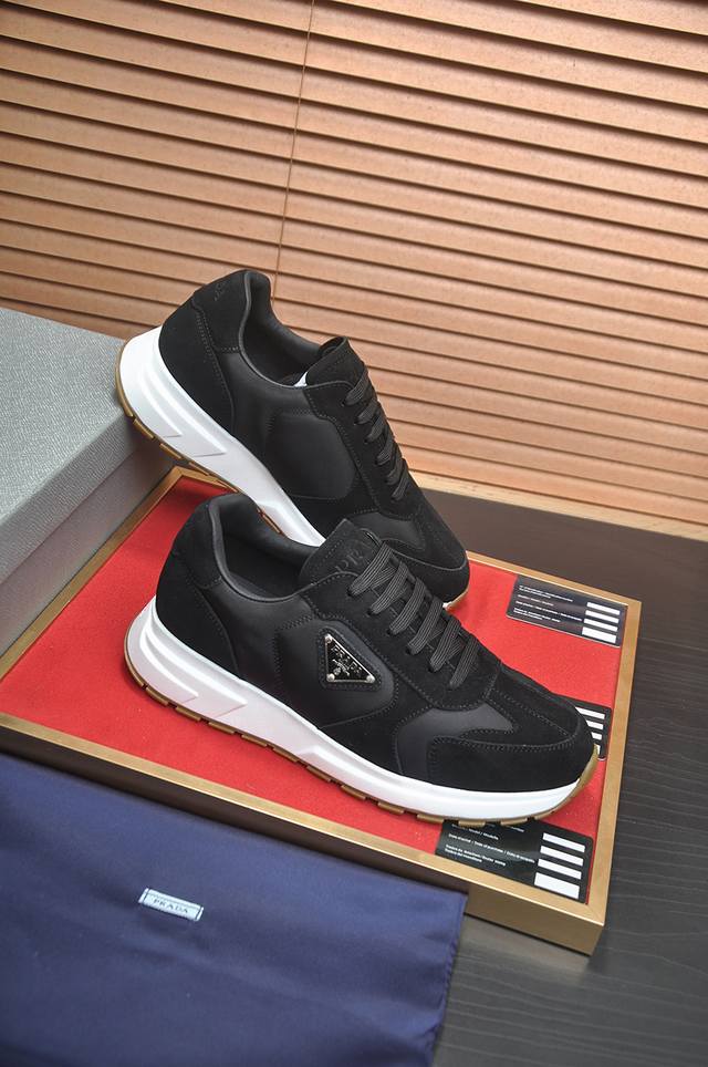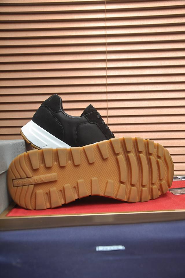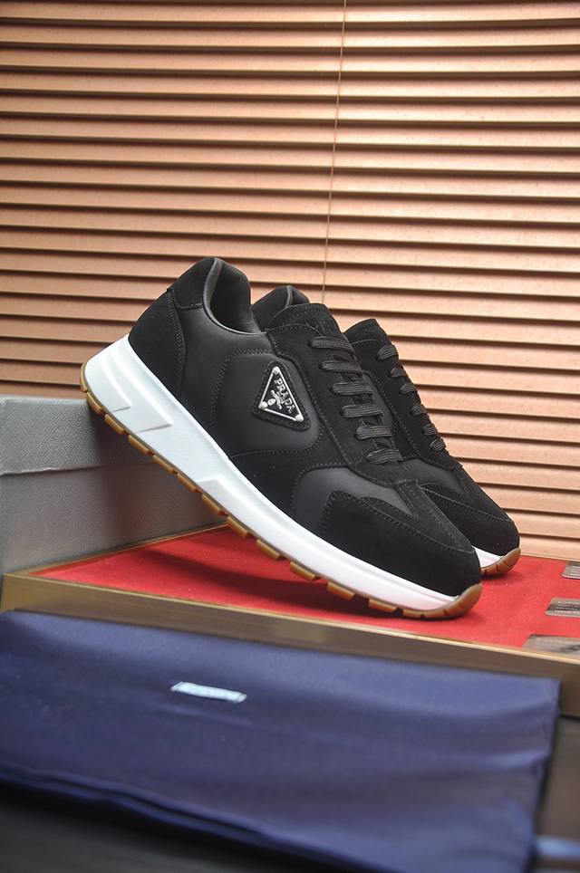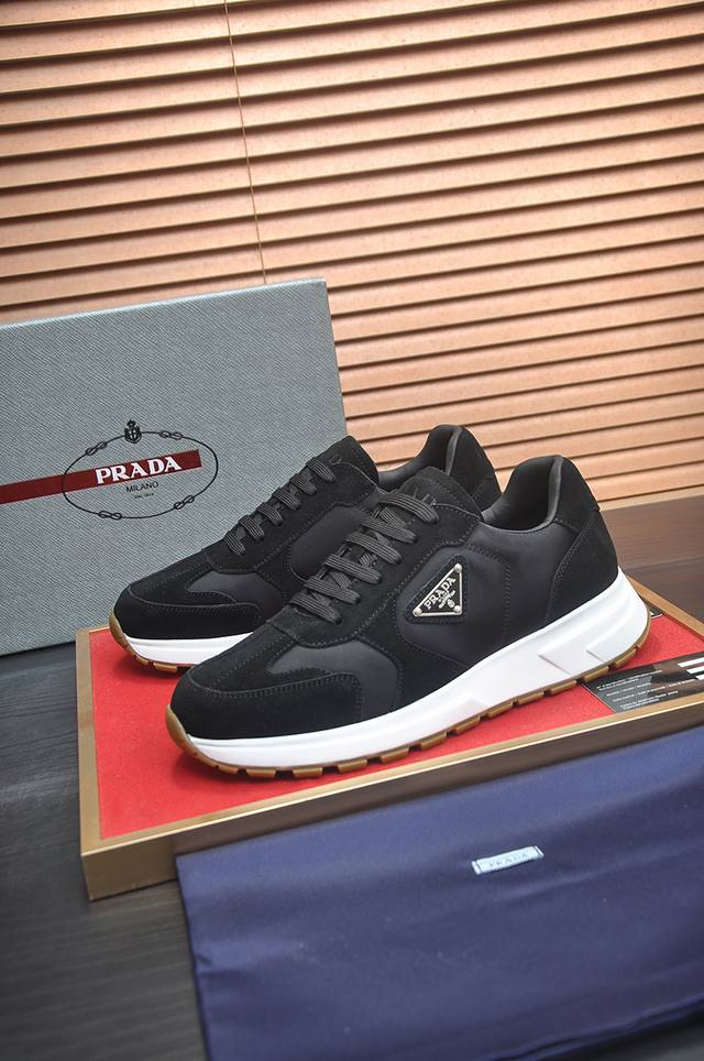 prad*普拉达 专柜爆款男鞋 官网1:1制作 进口牛皮面料拼接 牛皮内里 原厂特供原版底 38-45 45订做不退换