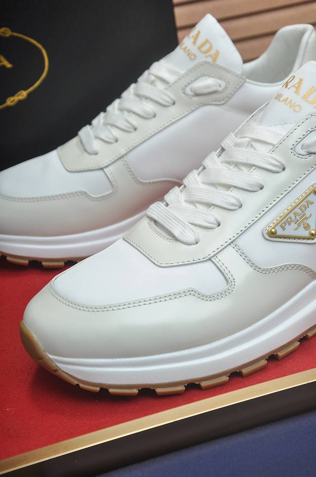 出厂价pp 普拉达prada顶级版运动鞋 鞋面进口飞织面料拼接漆皮 羊皮内里+牛皮踮脚 耐磨防滑轻便大底 男女同款 码数 35-47码...