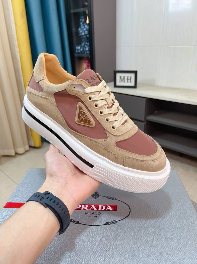 出厂价p 高品质新款prada 普拉达 专柜同步上市, 新款男鞋、面料精选进口面网配滴胶工艺。进口牛皮内里。高端开模防滑橡胶大底,精美线条、简约大气,上脚舒服上挡次、休闲旅游。码数:38一44 DDD
