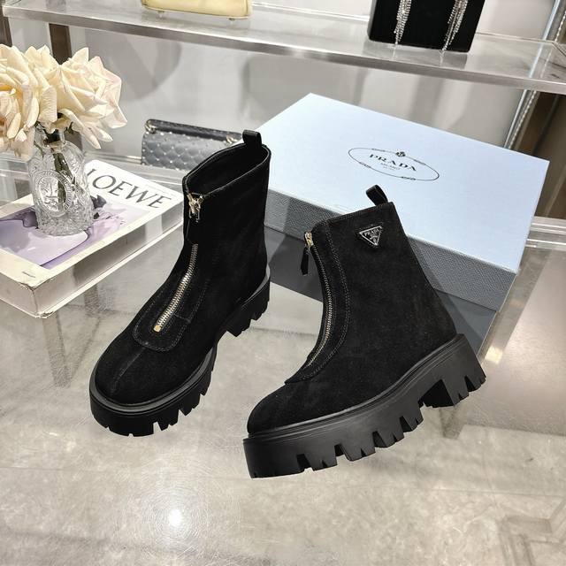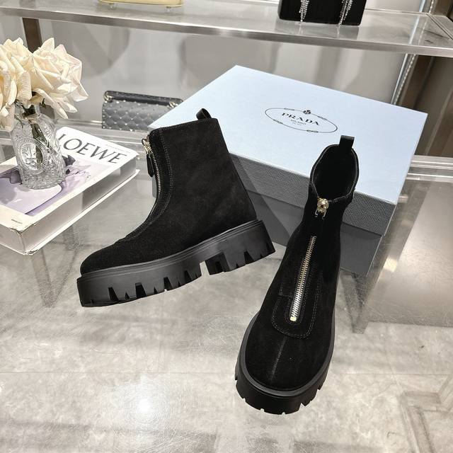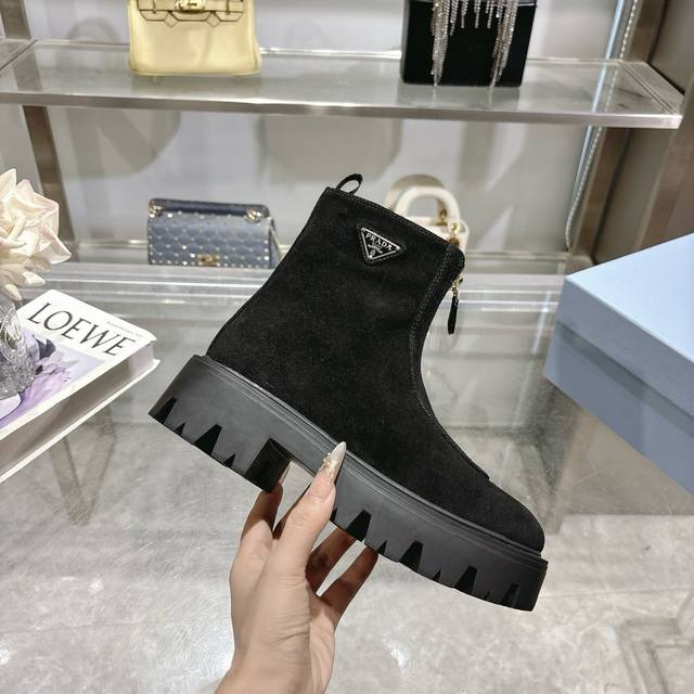 / 出厂价p prad* 25Ss普拉达经典三角标前拉链王炸女靴 冬天买不到的系列,绝对是今年的大爆款!!贼好看!prada靴子真的很哇塞!上脚大气显腿瘦气质这块刚