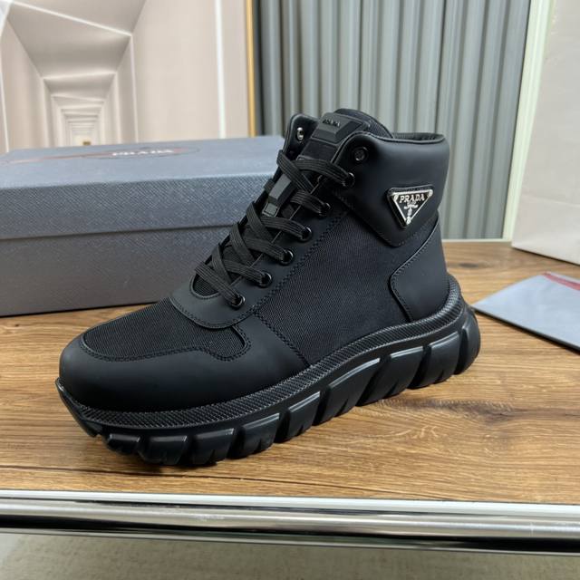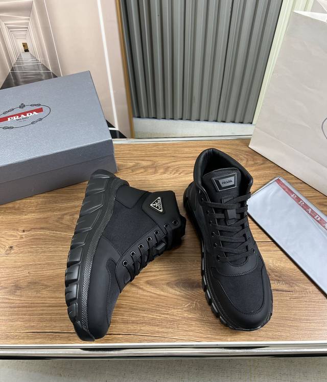 工厂P价P 顶级版本 原单 Prada 普拉达新款休闲运动鞋 原版购入开发 做货 普拉达家男士经典系列 科技透气面料搭配牛皮...