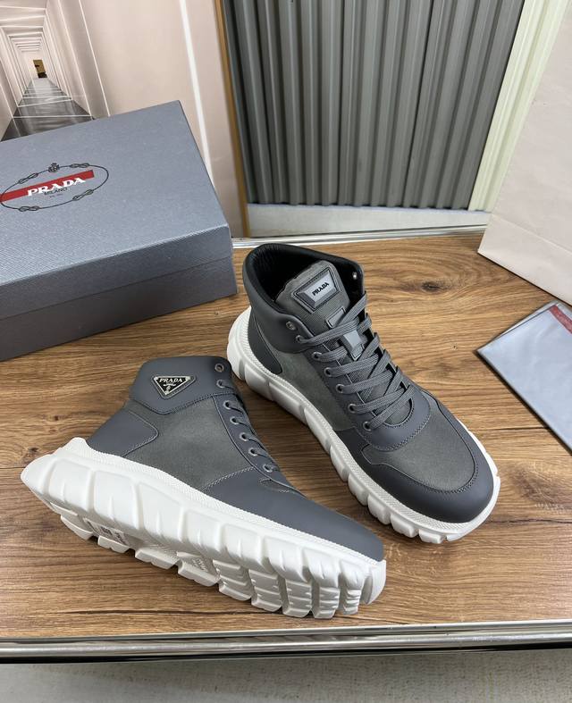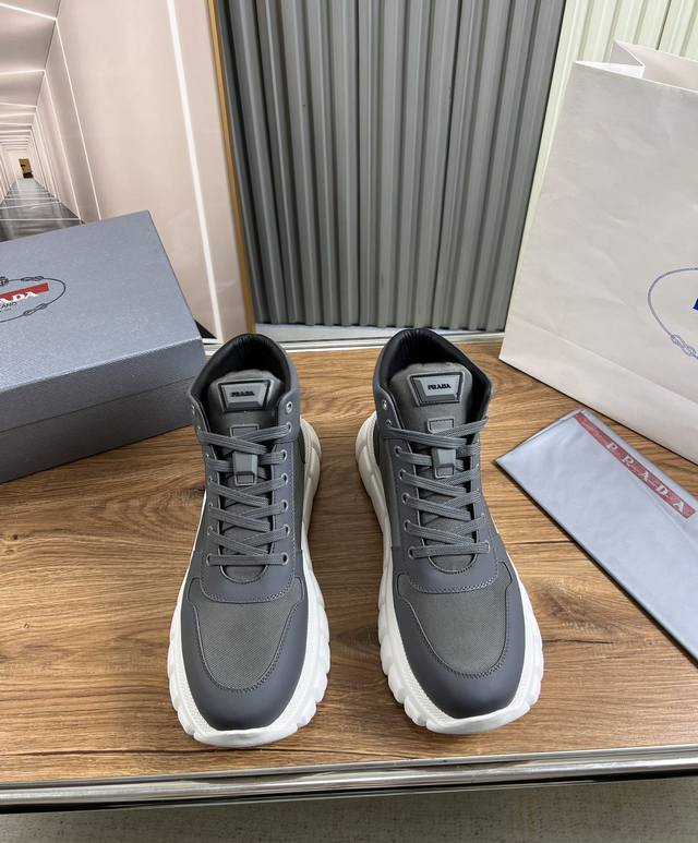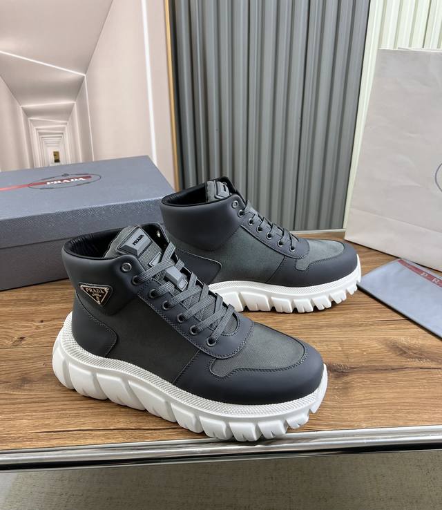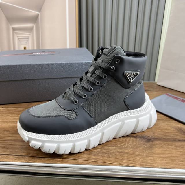 工厂p价 prada普拉达 男鞋专柜爆款 官网同步 1高品质出货原版牛皮拼接进口防水面料+牛皮内里 11复刻 原厂原版底 38-45...