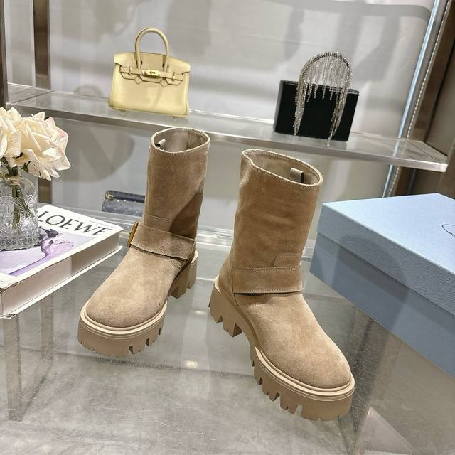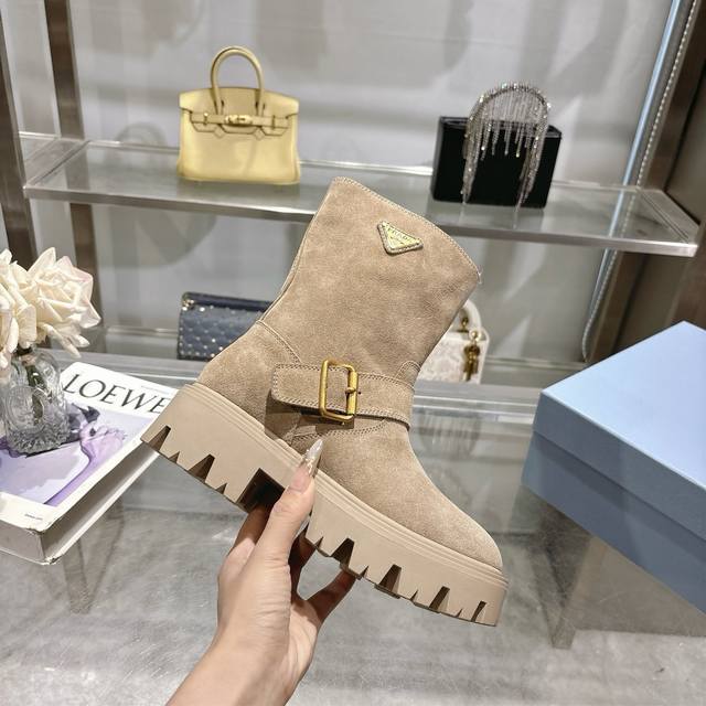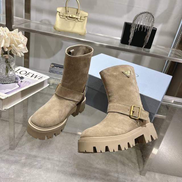 出厂价pp皮面 ,牛猄 prad* 25Ss普拉达经典三角标一脚蹬王炸女靴 冬天买不到的系列,绝对是今年的大爆款!!贼好看!prada靴子真的很哇塞!上脚大气显