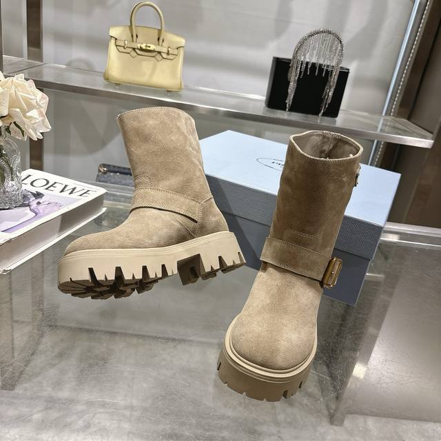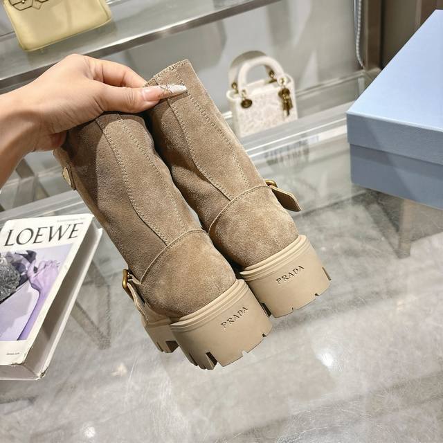 / 出厂价pp皮面 ,牛猄 prad* 25Ss普拉达经典三角标一脚蹬王炸女靴 冬天买不到的系列,绝对是今年的大爆款!!贼好看!prada靴子真的很哇塞!上脚大气显