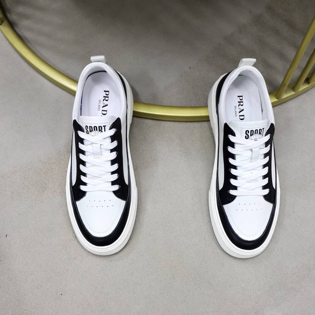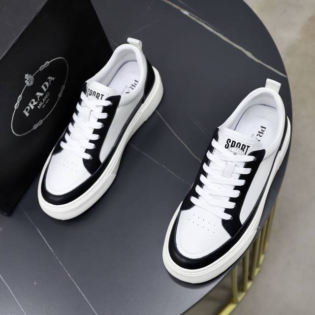 p Prada 普拉达 男士新款休闲鞋,这款鞋面采用进口小牛皮+羊里!大底采用防滑发泡大底,上脚脚感很好,洋气时髦单品!...