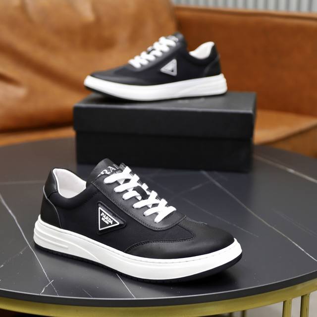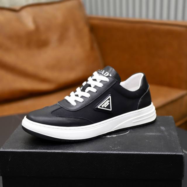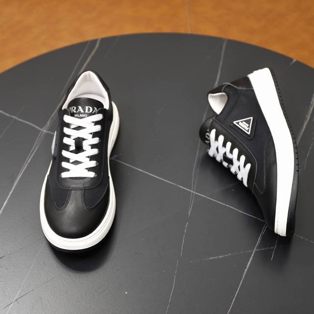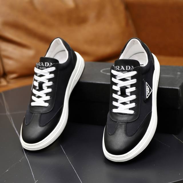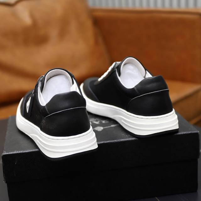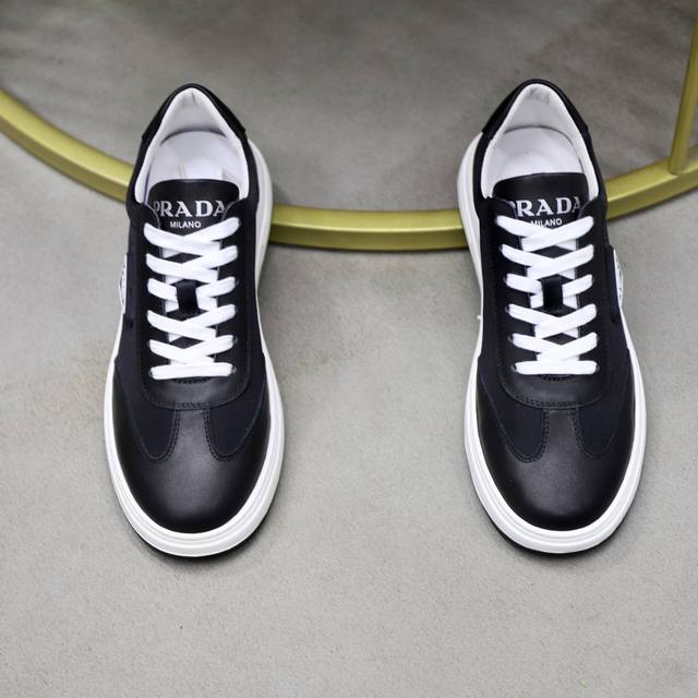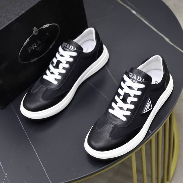 出厂价pp 普拉达 休闲板鞋 官网同步新款 进口打蜡牛皮牛皮内里制作原版中底 私家定制滴胶发泡大底大底组合 38-44X