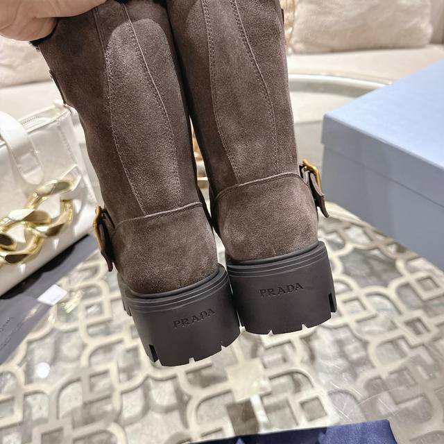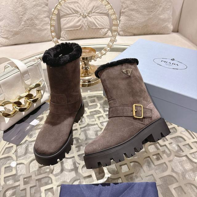 出厂价pp: DDD 普拉达:新款。短靴 DDD 面:进口全粒面牛皮、高丝光牛反绒 DDD 里:进口羊毛里 DDD 垫:进口羊毛 DDD 底:原版工艺大底 厚6Cm DDD 码数:35-42 41.42定做 DDD