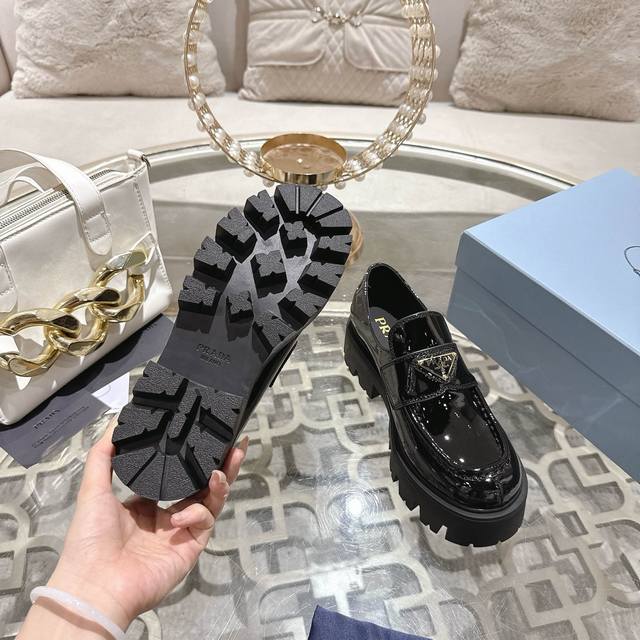 prada 普拉达 厚底正装出货 专柜同款 懂货的赶紧下手!新款男士休闲皮鞋 进口雾面开边珠 拼接缝制工艺 柔软舒适不起皱褶...
