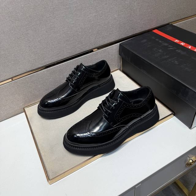 Prada普拉达 男鞋专柜爆款,官网同步,1高品质出货 原版磨砂牛皮+牛皮内里,11复刻 ,原厂原版底,38-45 45定做不退换