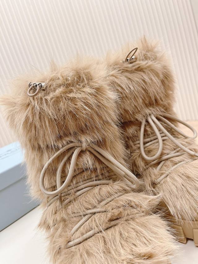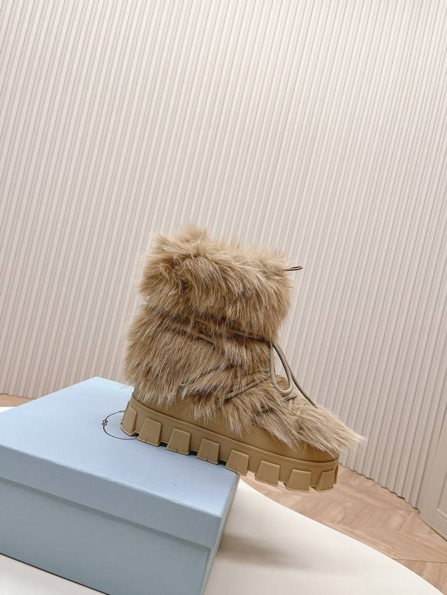 出厂价pp: 最新款普拉达:雪地靴 涂珐琅三角形金属徽标 靴筒:14厘米 厚底,50毫米 凹凸纹1:1原版大底 凹口沿条 颜色:4 码数:35-42 41.42