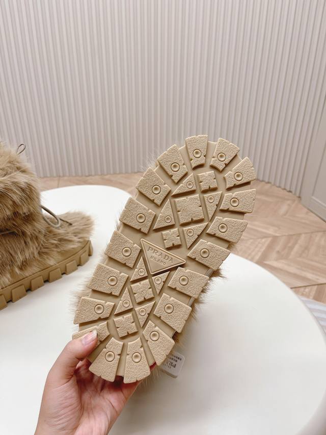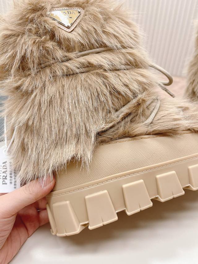 出厂价pp: DDD 最新款普拉达:雪地靴 DDD 涂珐琅三角形金属徽标 DDD 靴筒:14厘米 DDD 厚底,50毫米 DDD 凹凸纹1:1原版大底 DDD 凹口沿条 DDD 颜色:4 DDD 码数:35-42 41.42定做 DDD