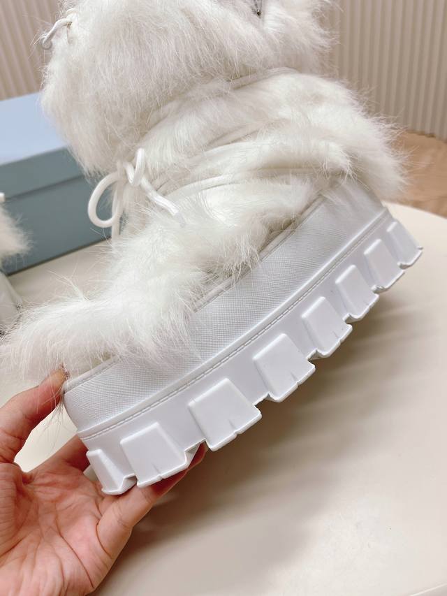 出厂价pp: DDD 最新款普拉达:雪地靴 DDD 涂珐琅三角形金属徽标 DDD 靴筒:14厘米 DDD 厚底,50毫米 DDD 凹凸纹1:1原版大底 DDD 凹口沿条 DDD 颜色:4 DDD 码数:35-42 41.42定做 DDD