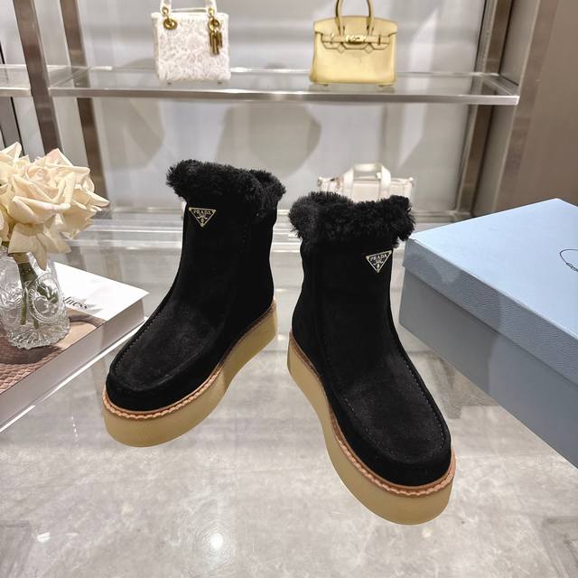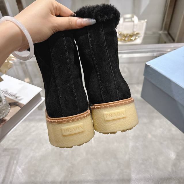 / 出厂价pp: 最新款普拉达:雪地靴 涂珐琅三角形金属徽标 靴筒:14厘米 厚底,50毫米 凹凸纹1:1原版大底 凹口沿条 颜色:5 码数:35-42 41.42