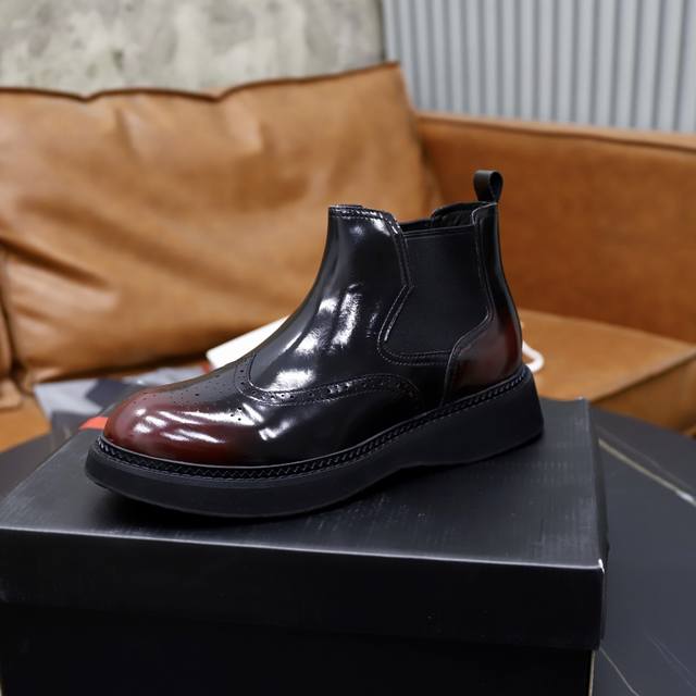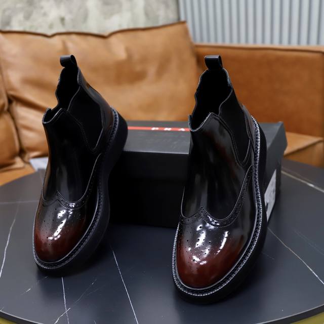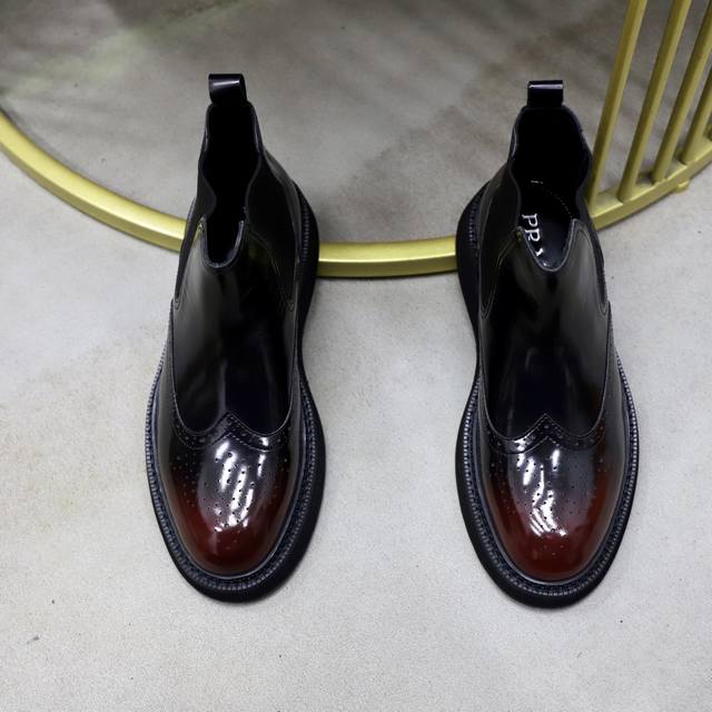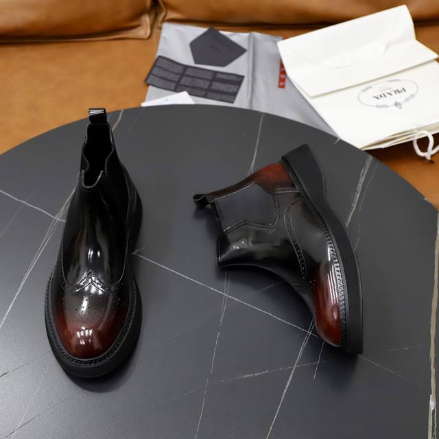 出厂价pp: 绒里 牛皮里 Ddd 品牌:普拉达prada Ddd 标准码:38-44 45订做 Ddd 等级:官网同款 Ddd 材料:原版高档牛皮面 舒适绒里 牛皮内里可选 防滑柔软耐磨大底 Ddd 款式类别:男士时尚休闲靴 尊贵奢侈品大牌元素 顶级奢华 Ddd 颜色:实物图片色 DDD