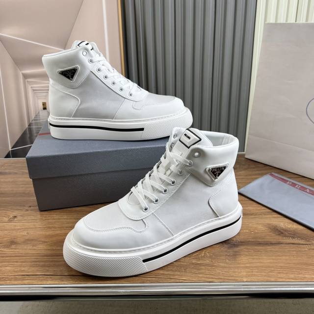 p Prada 普拉达 男士新款休闲鞋,这款鞋面采用进口小牛皮+羊里!大底采用防滑发泡大底,上脚脚感很好,洋气时髦单品!...