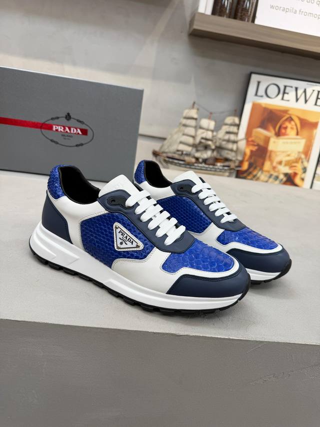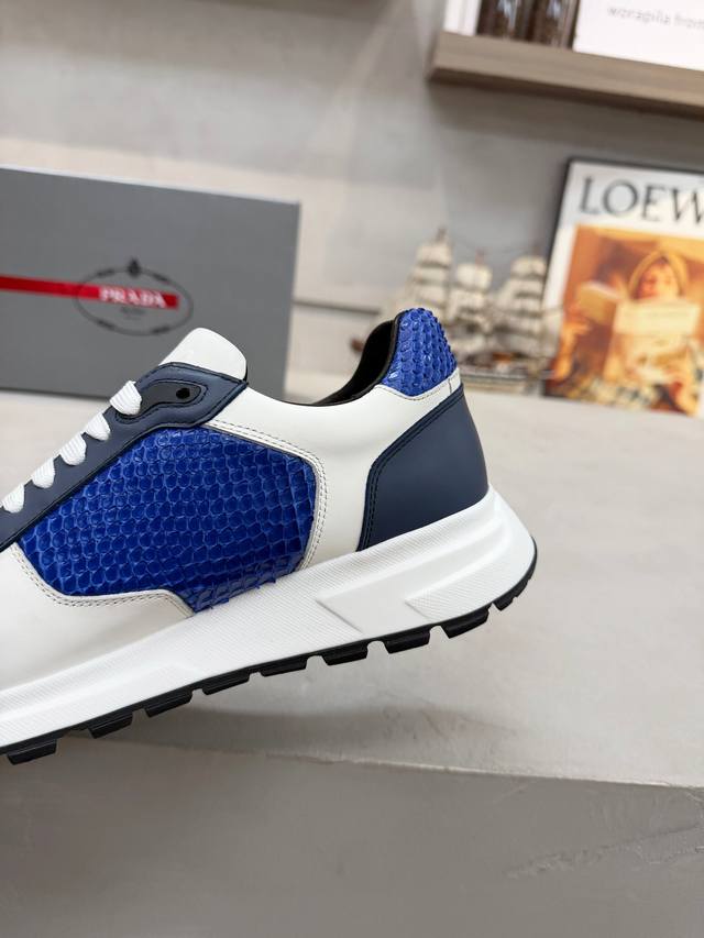 / 出厂价pp: prada普拉达 男鞋专柜爆款, 官网同步,高品质出货 面料:原版牛皮配蛇纹皮 内里:牛皮垫脚+牛皮内里, 大底:原厂橡胶底, 码数:38-45