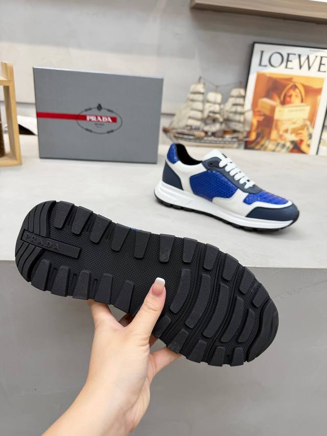 商品商标:Prada 普拉达 商务休闲男鞋 正码码数: 38-44 45定做不退换 商品材料:精选 牛皮拼接网布鞋面 网内里 牛皮鞋垫 橡胶大底