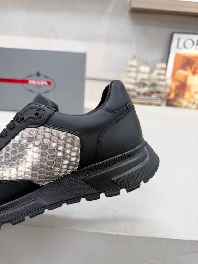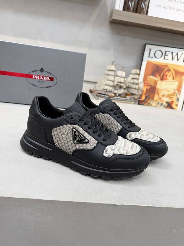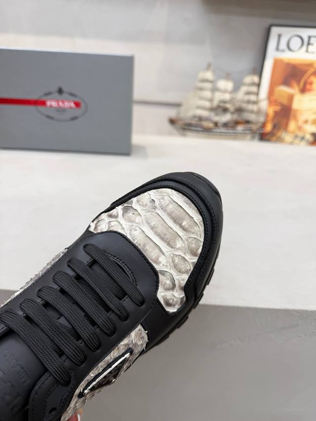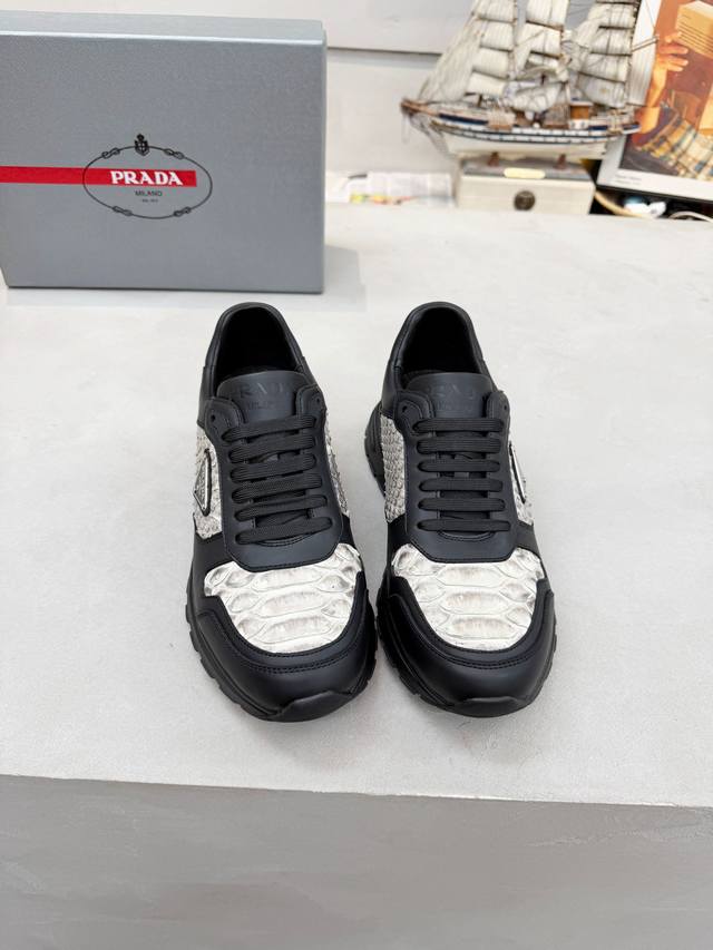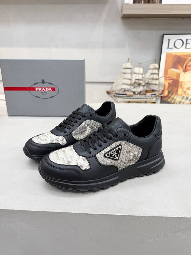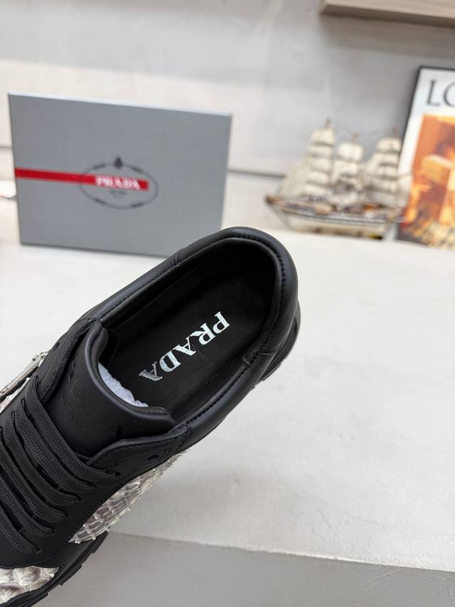 出厂价pp: prada普拉达 男鞋专柜爆款, 官网同步,高品质出货 面料:原版牛皮配蛇纹皮 内里:牛皮垫脚+牛皮内里, 大底:原厂橡胶底, 码数:38-45