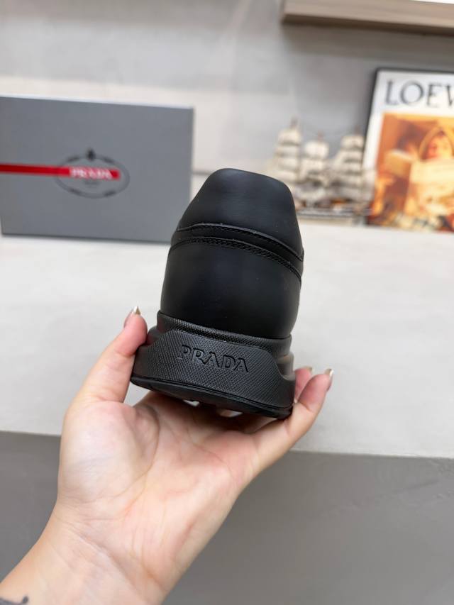 出厂价pp 普拉达 休闲板鞋 官网同步新款 进口打蜡牛皮牛皮内里制作原版中底 私家定制滴胶发泡大底大底组合 38-44X