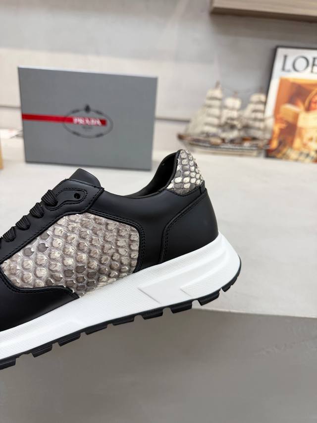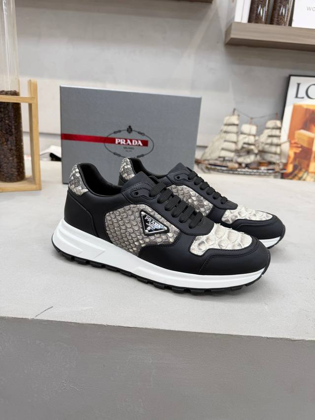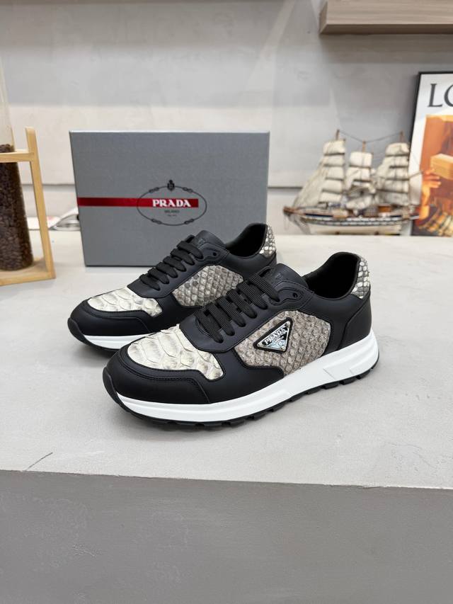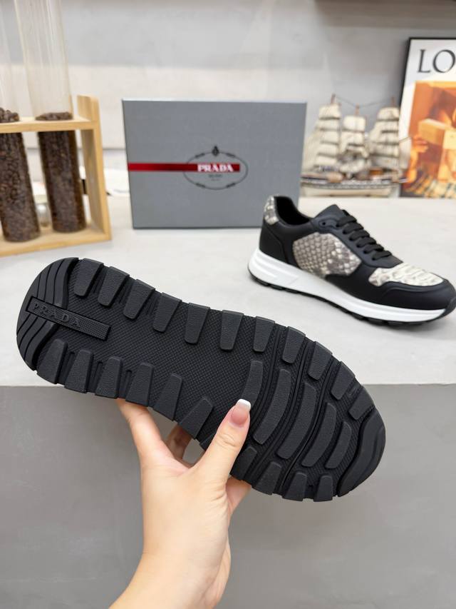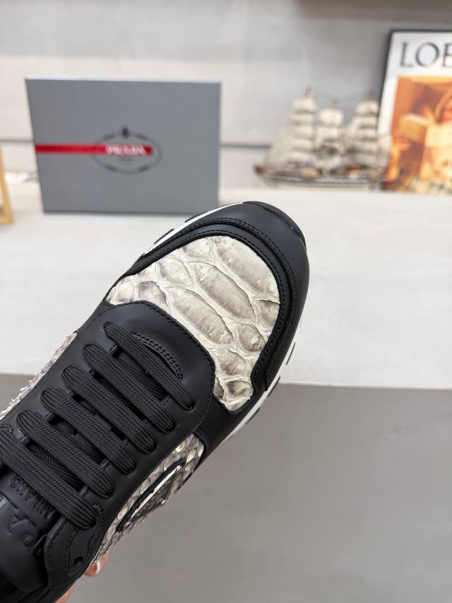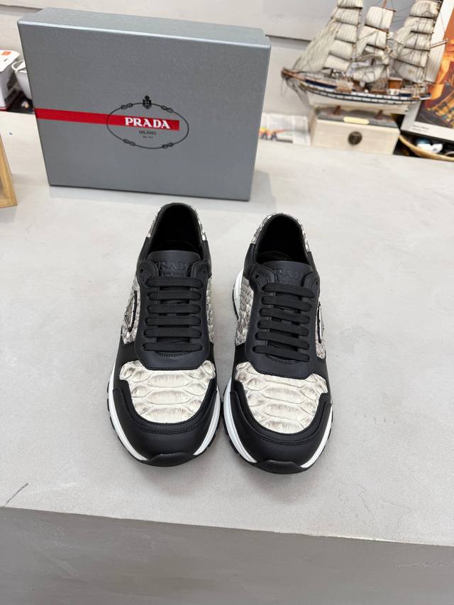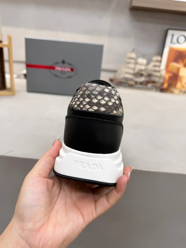 出厂价pp: prada普拉达 男鞋专柜爆款, 官网同步,高品质出货 面料:原版牛皮配蛇纹皮 内里:牛皮垫脚+牛皮内里, 大底:原厂橡胶底, 码数:38-45