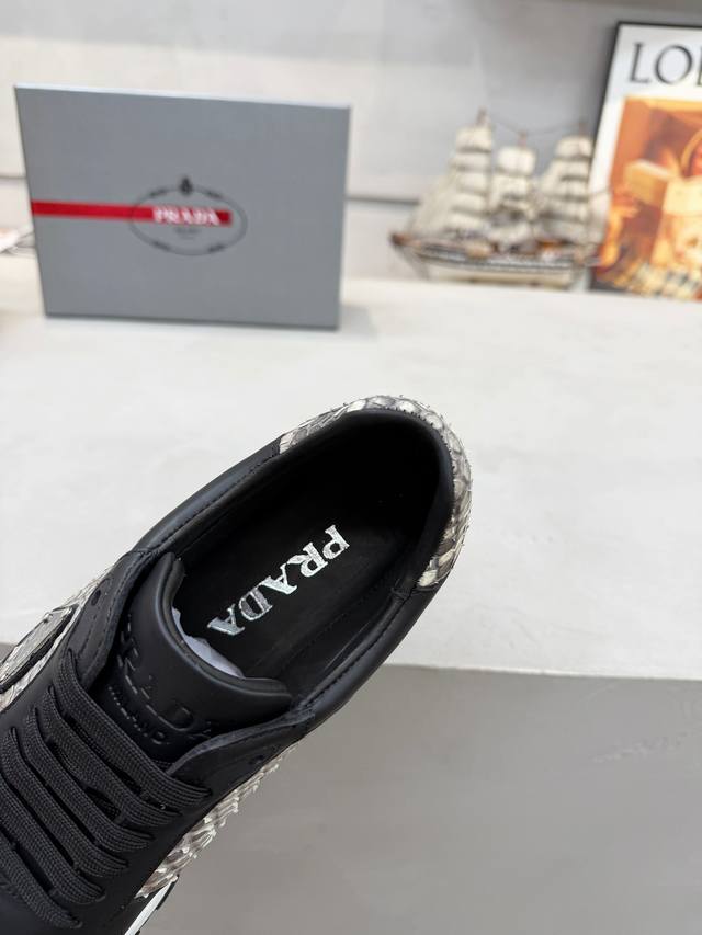 出厂价pp: DDD prada普拉达 男鞋专柜爆款, DDD 官网同步,高品质出货 DDD 面料:原版牛皮配蛇纹皮 DDD 内里:牛皮垫脚+牛皮内里, DDD 大底:原厂橡胶底, DDD 码数:38-45 45定做不退换 DDD
